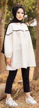 Tunique à capuche tricolore (Vêtement décontracté moderne pour femme voilée) - Couleur noir, blanc et mauve - REF. 38284 (24.00 €)