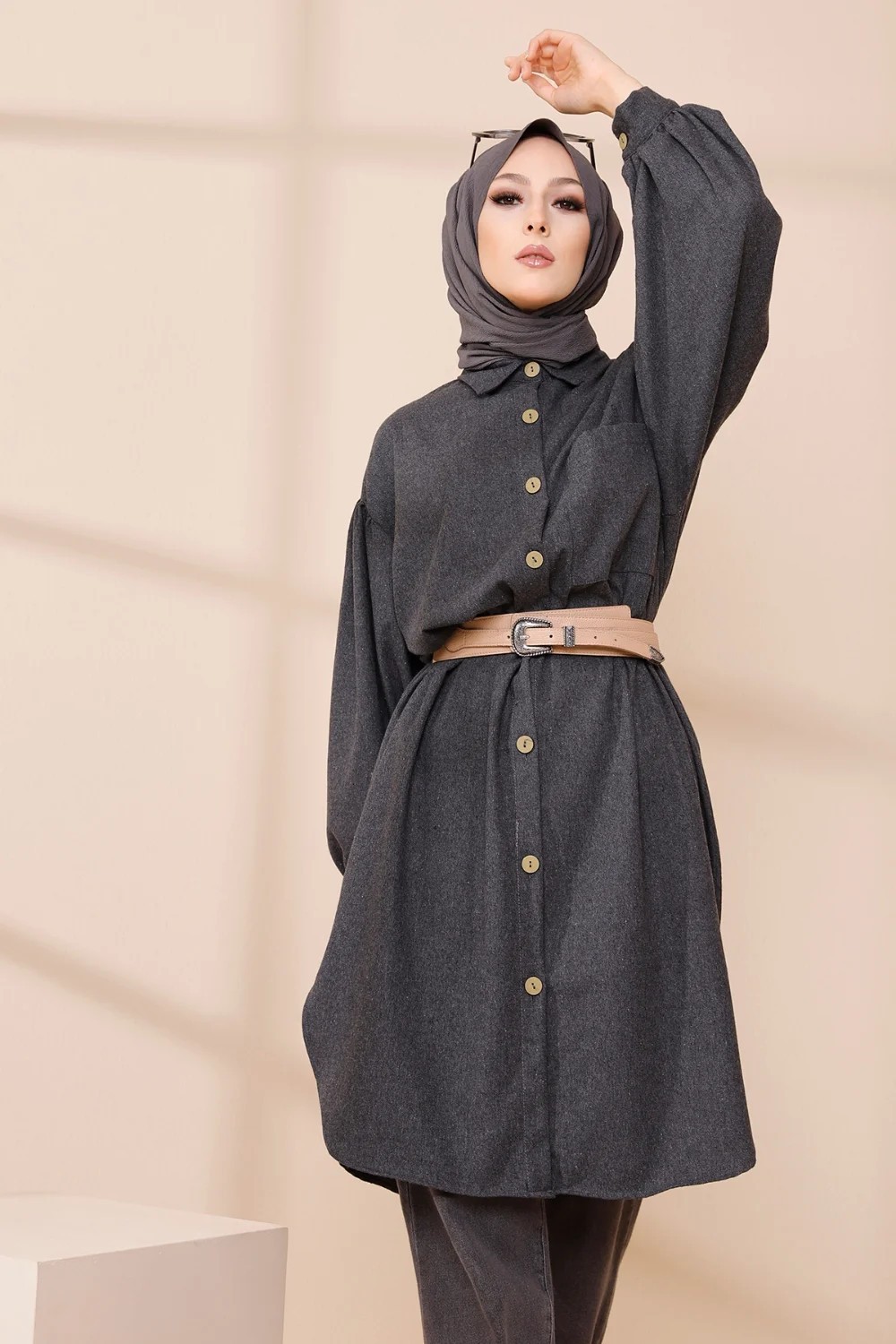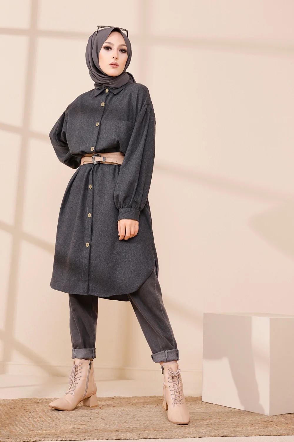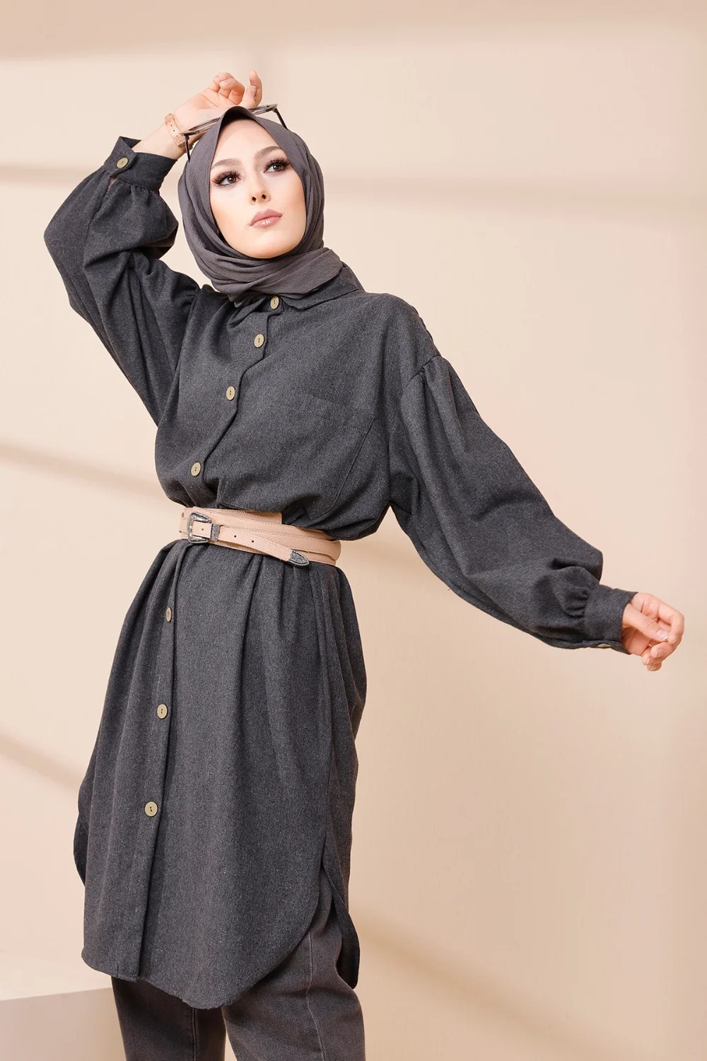 Chemise longue et ample pour femme (Tenue hijab chic et mastour) - Couleur anthracite (gris foncé) Vetement & Accessoire