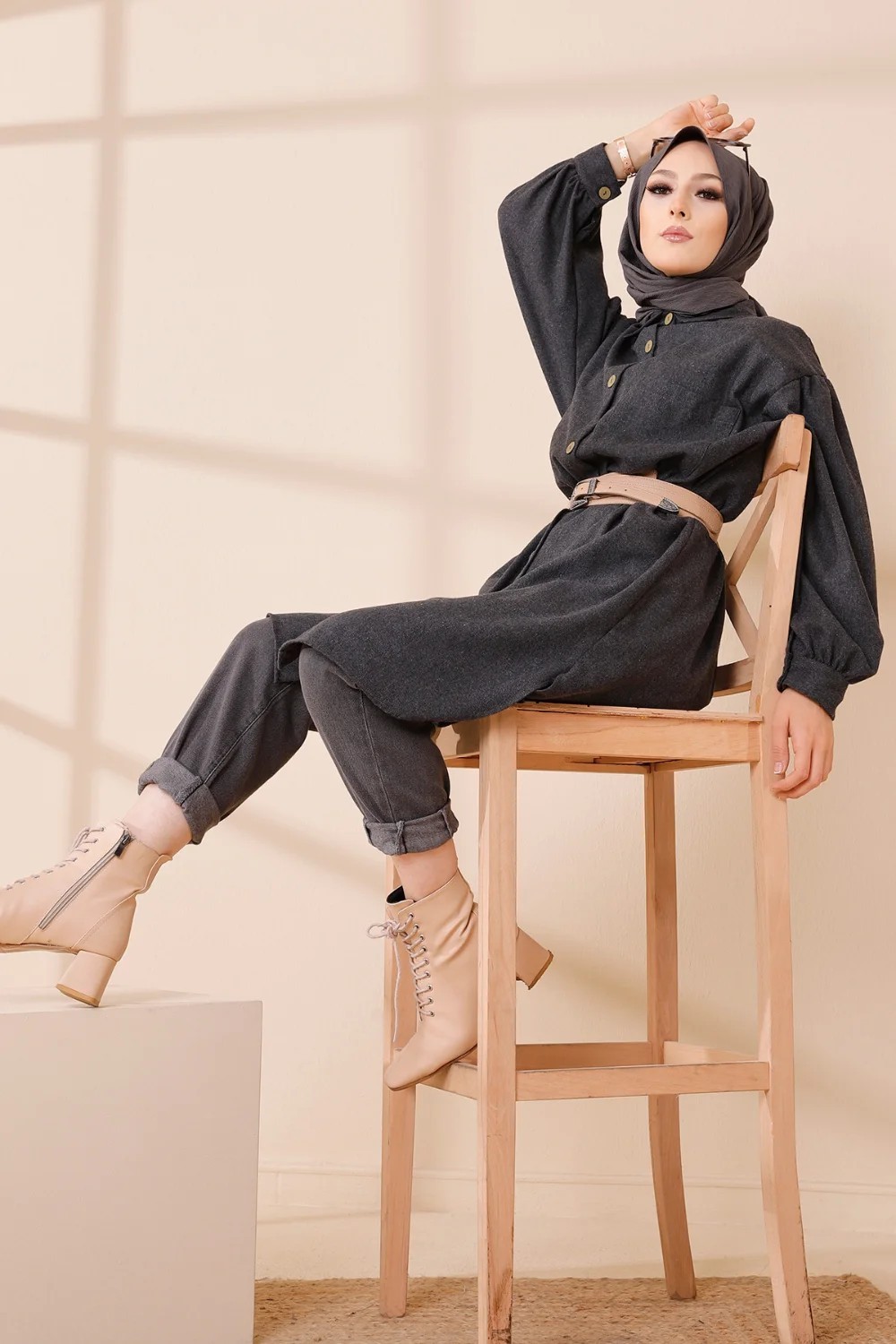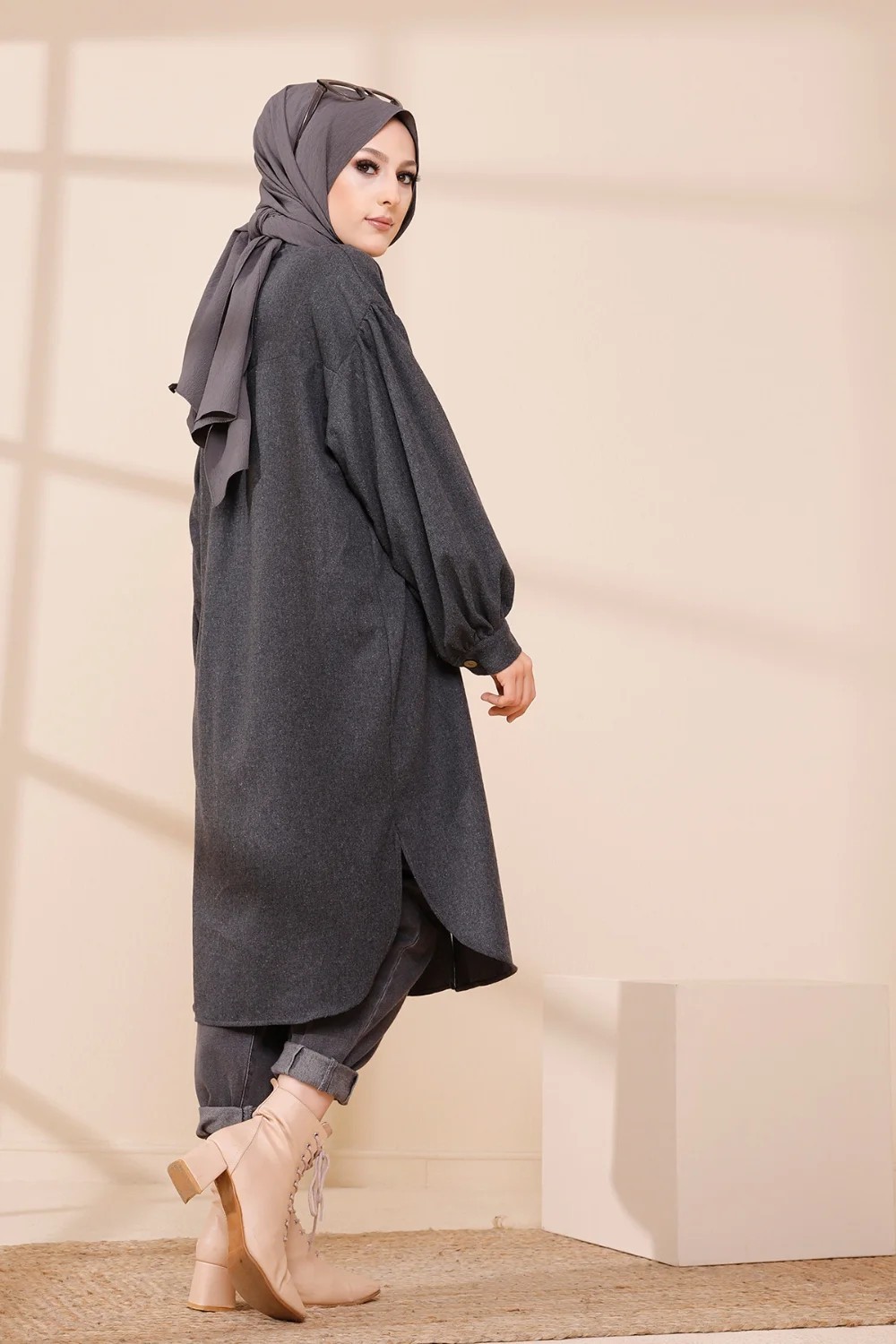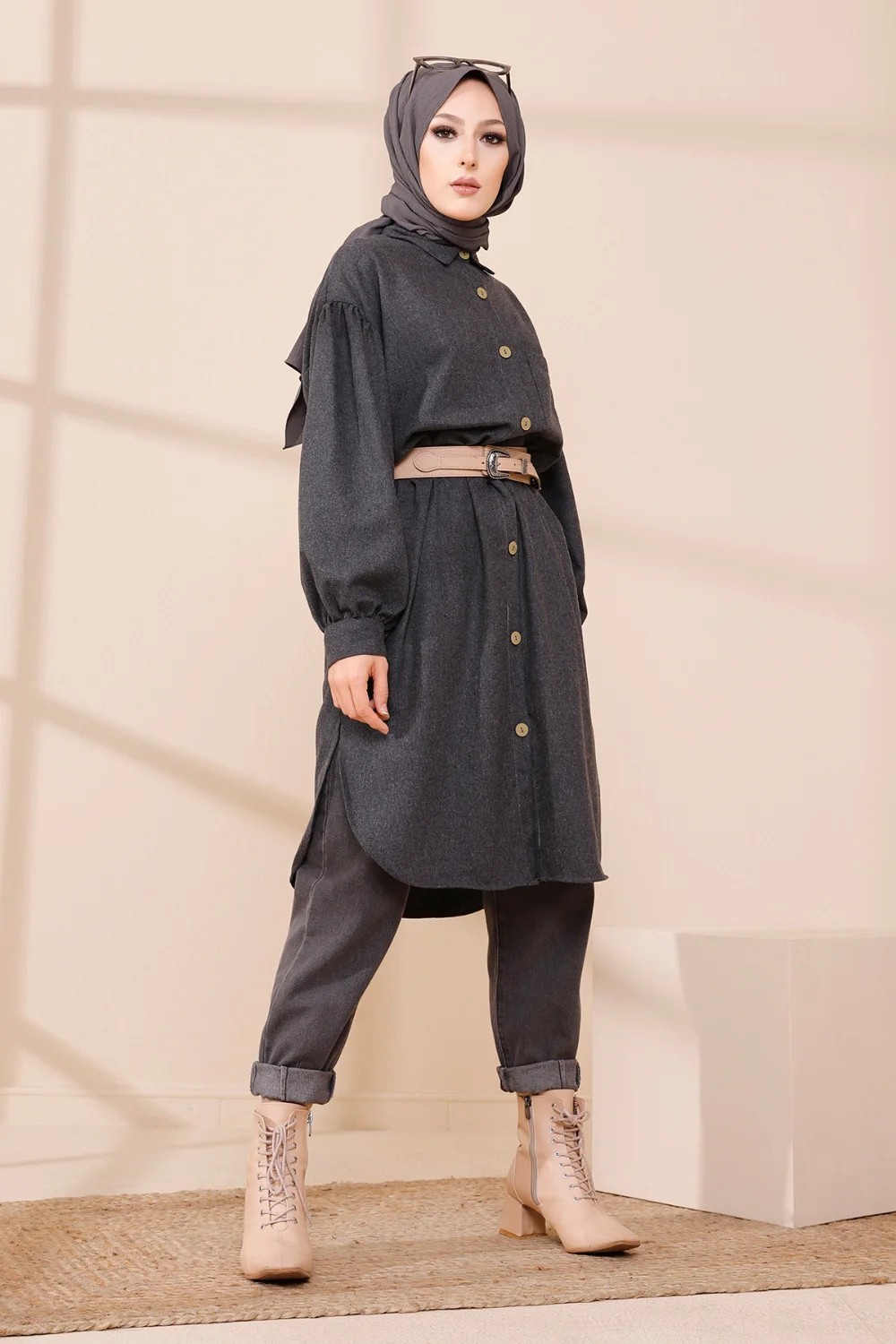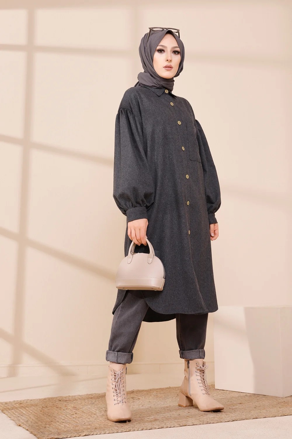 Chemise longue et ample pour femme (Tenue hijab chic et mastour) - Couleur anthracite (gris foncé) Vetement & Accessoire