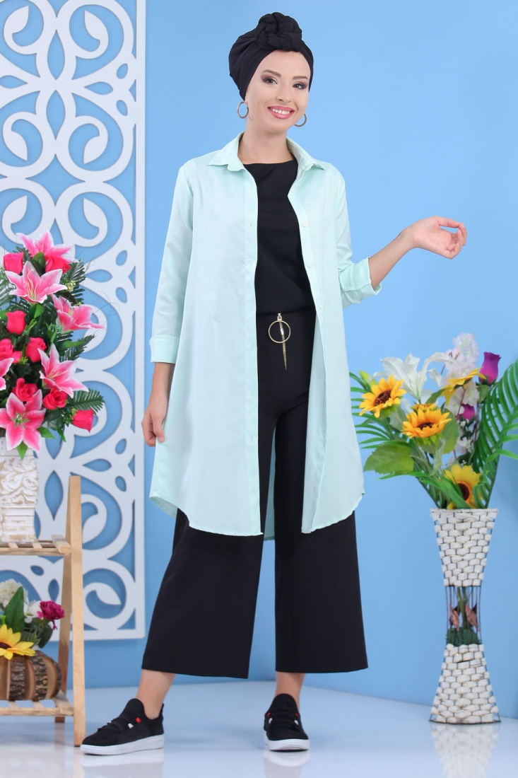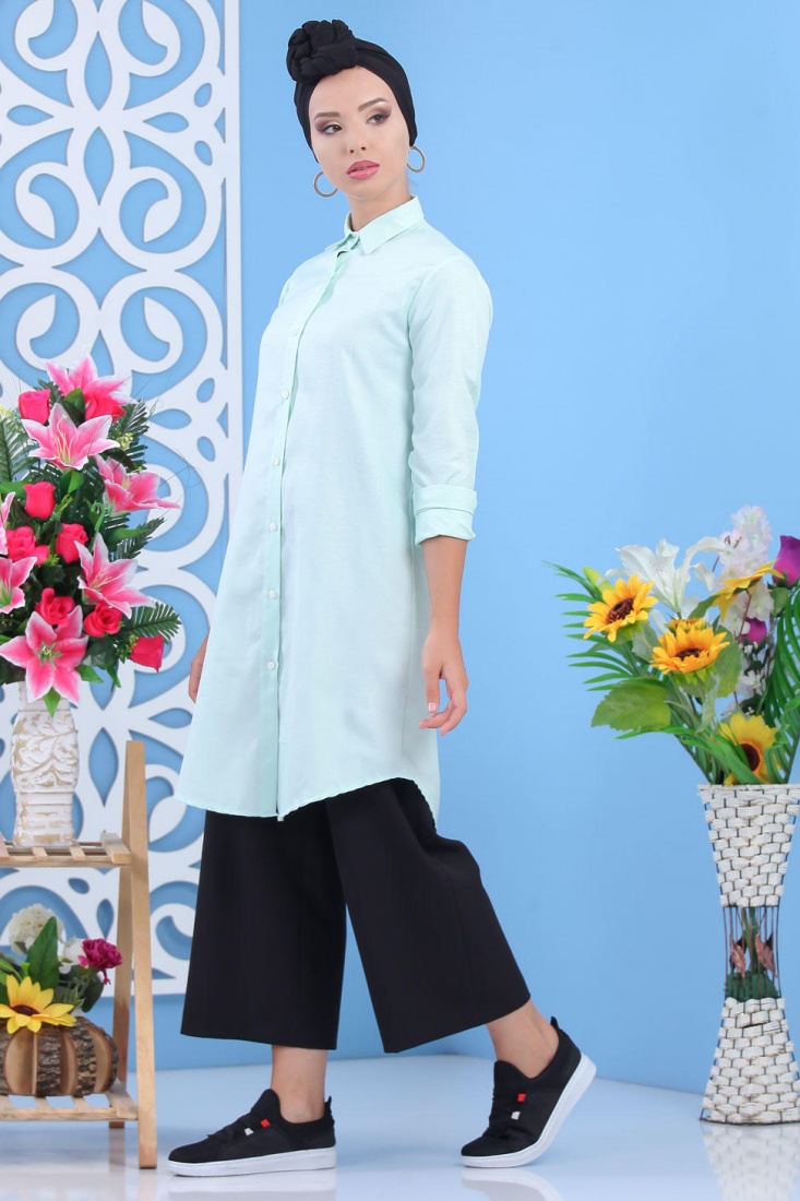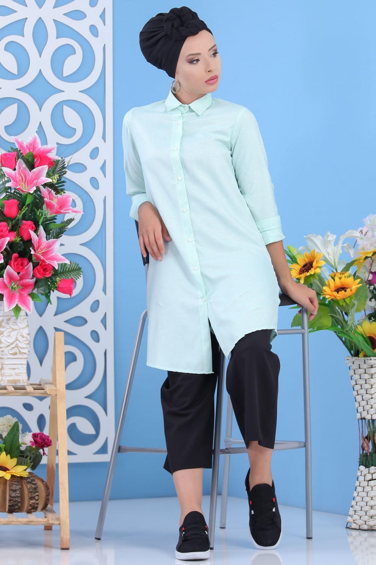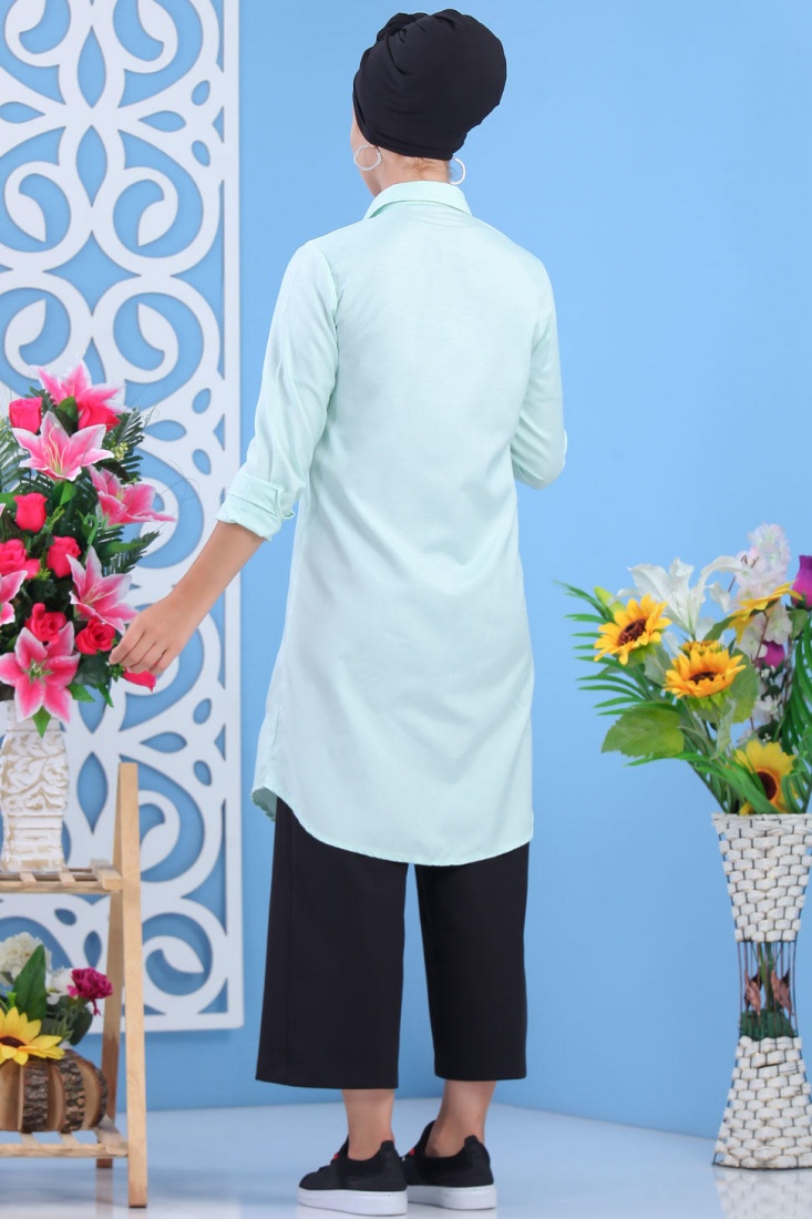 Chemise longue évasée couleur vert d'eau (100% coton) Vetement & Accessoire