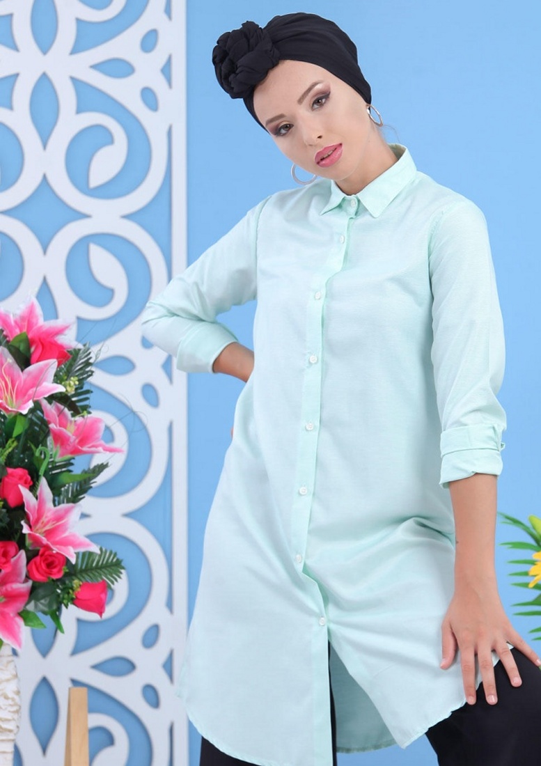 Chemise longue evasee couleur vert d'eau (100% coton)
