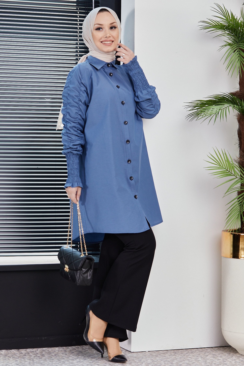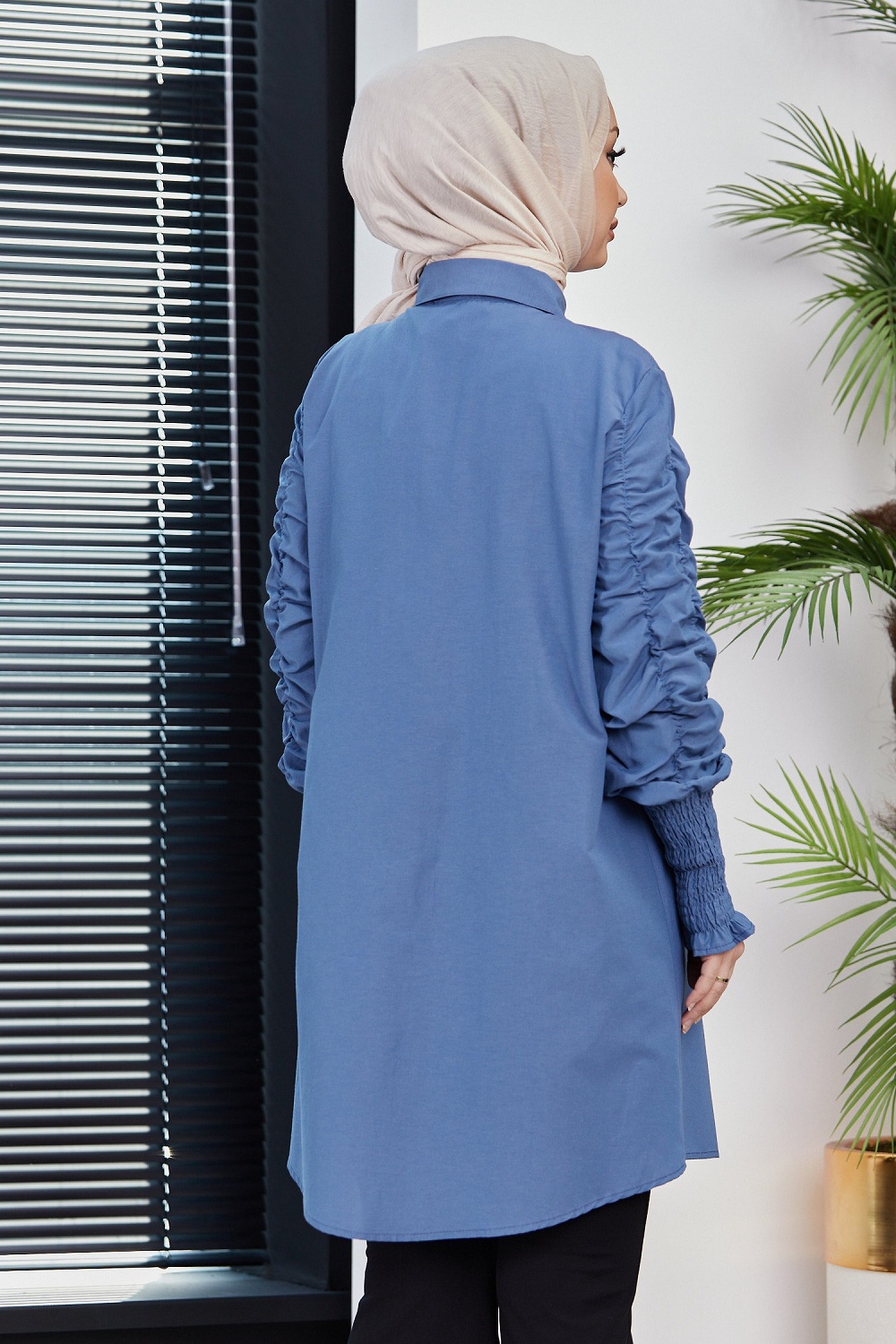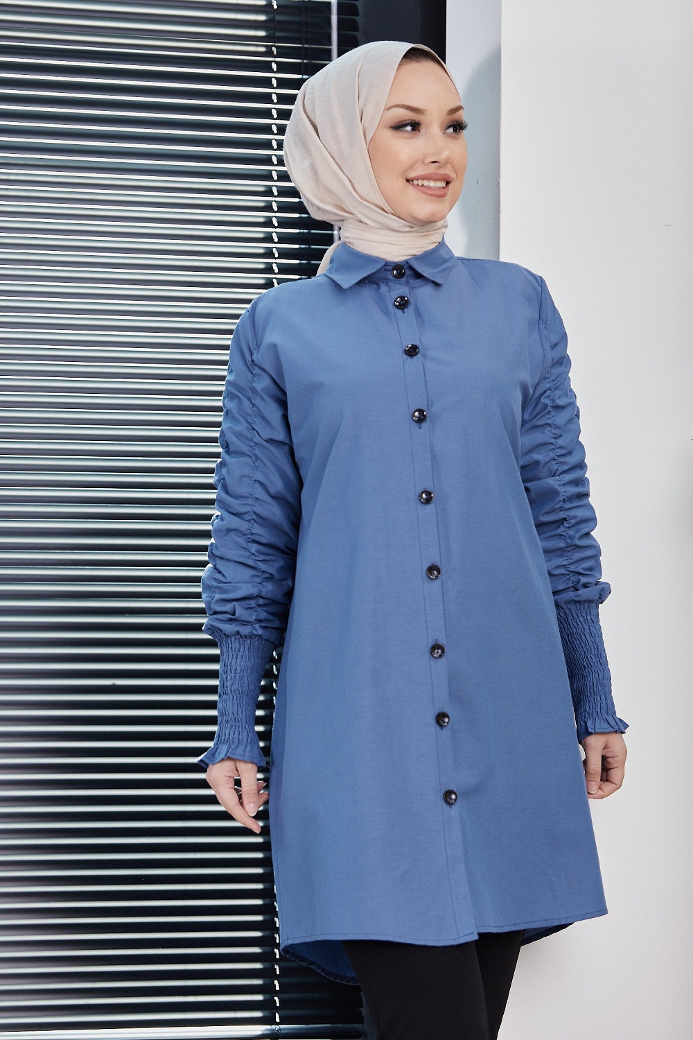 Chemise manches plissees (Vetement Hijab turque en ligne) - Couleur bleu indigo