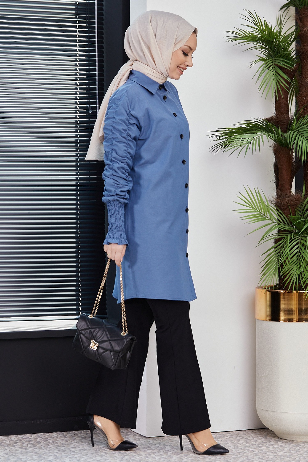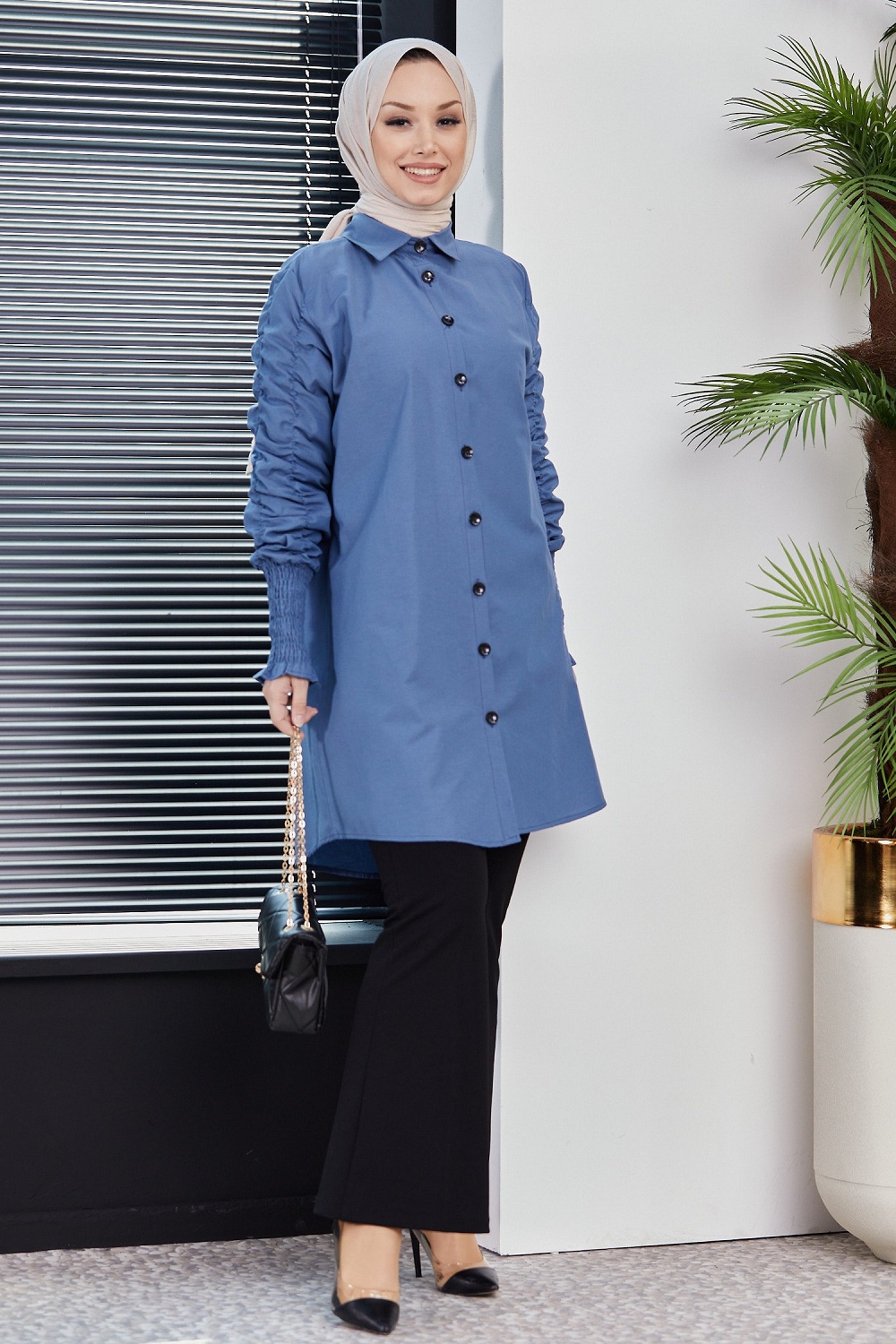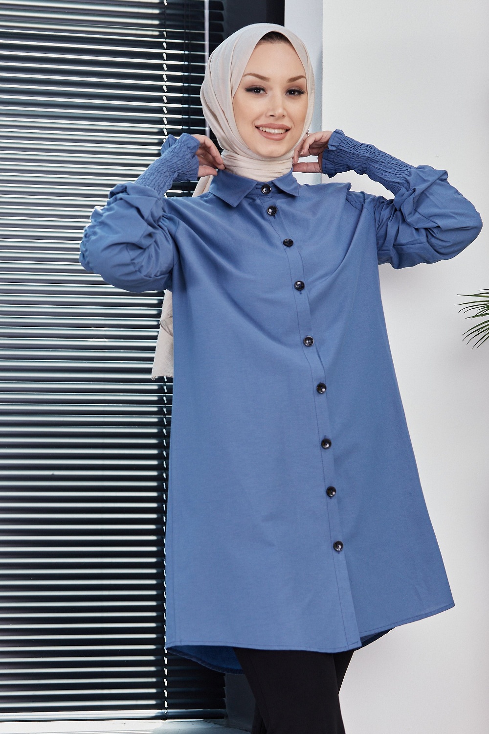 Chemise manches plissees (Vetement Hijab turque en ligne) - Couleur bleu indigo