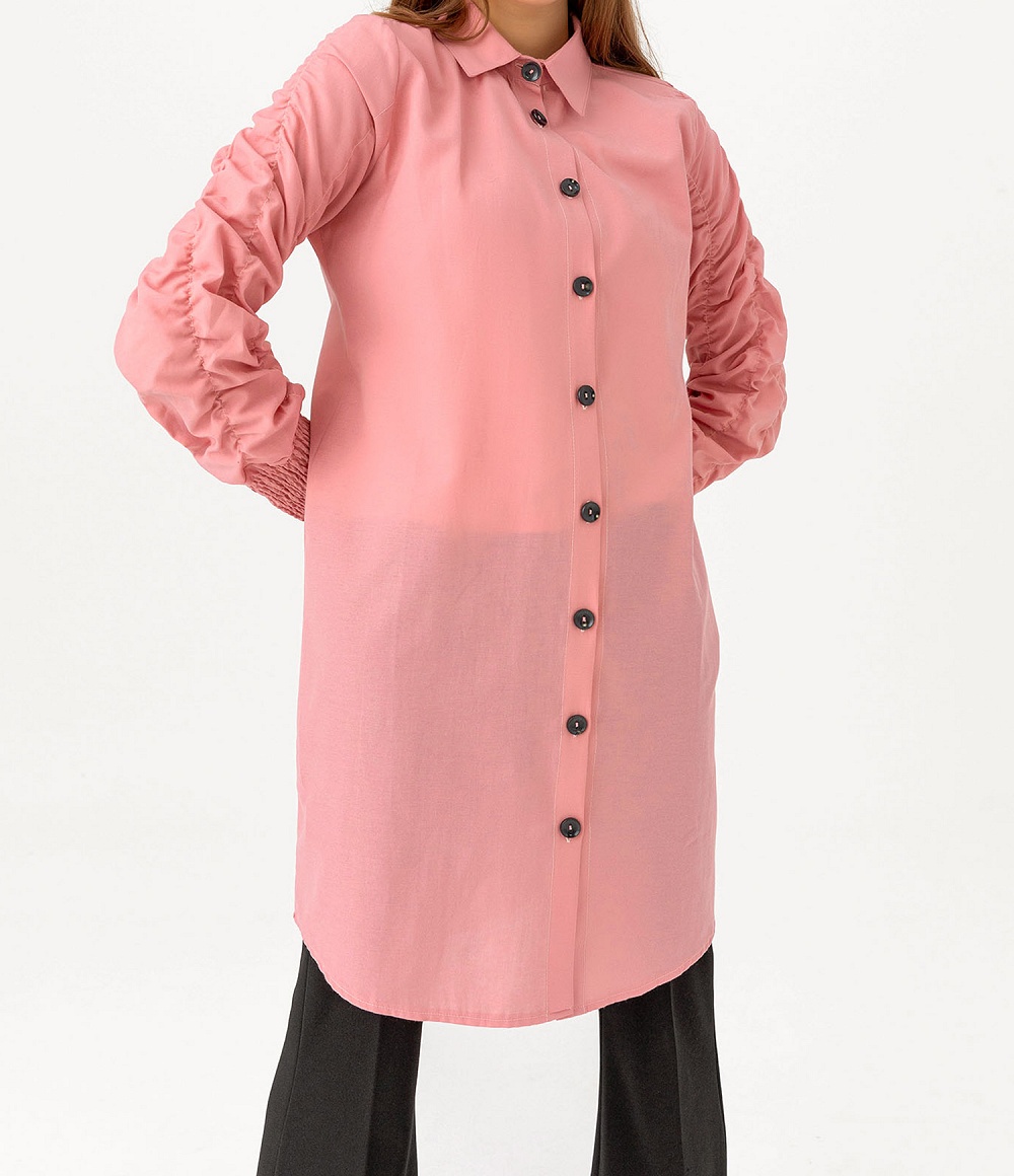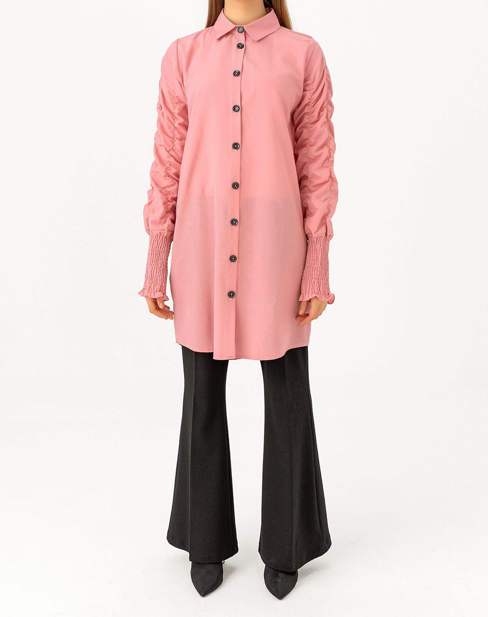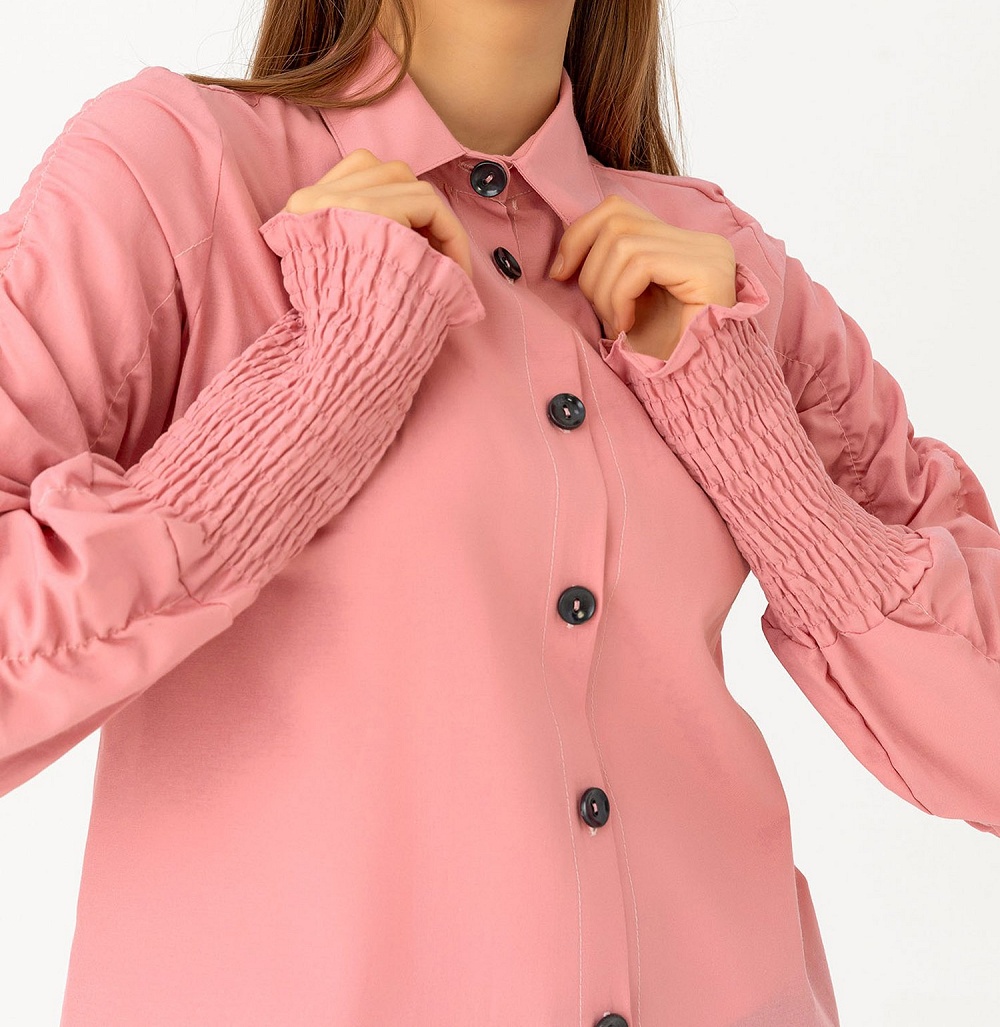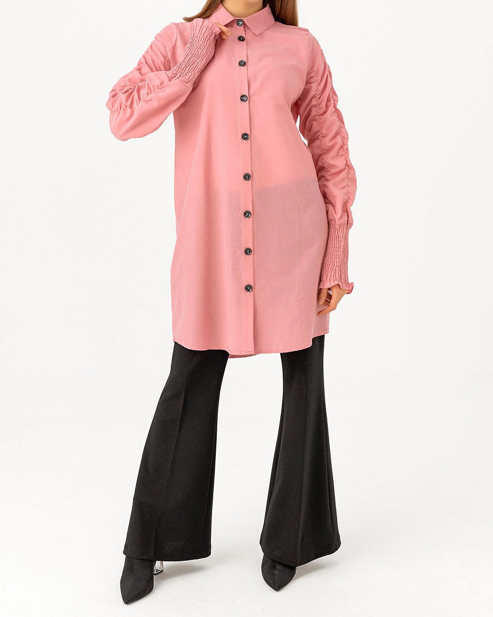 Chemise manches plissées à l'élastique pour femme - Couleur vieux rose Vetement & Accessoire