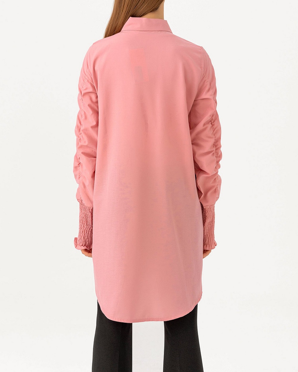 Chemise manches plissees a l'elastique pour femme - Couleur vieux rose