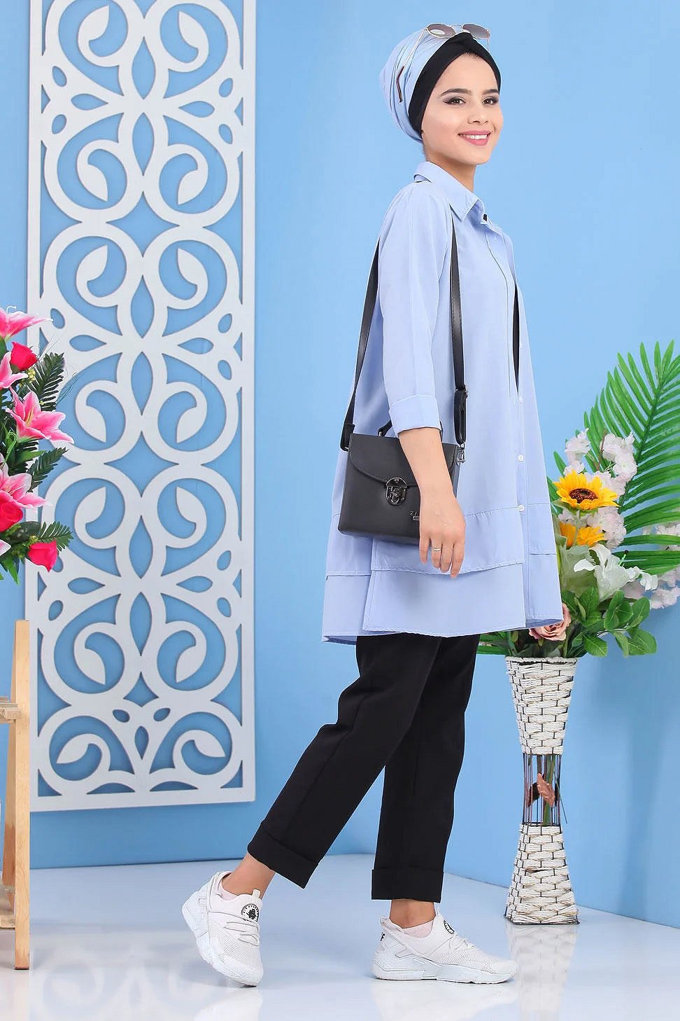 Tunique-chemise style classique pour femmes (Vêtements Chic Modèles Hijab - Mode musulmane) - Couleur noir - REF. 35998 (24.90 €)