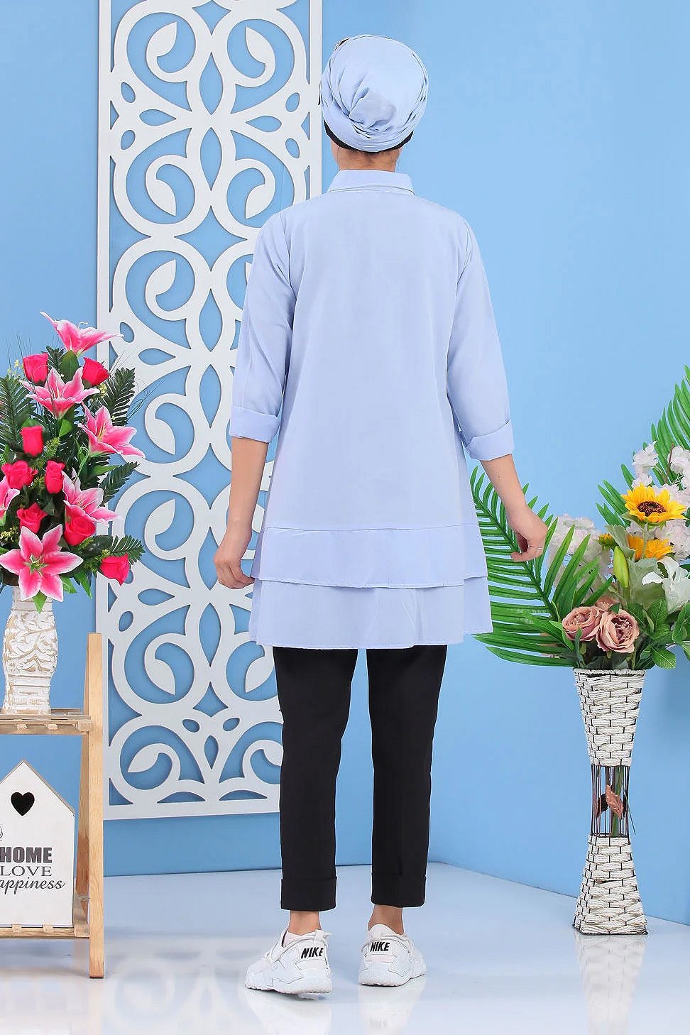 Chemise longue à carreaux pour femme (Boutique Vêtement moderne pour musulmane) - Couleur bleu écru - REF. 38330 (24.90 €)