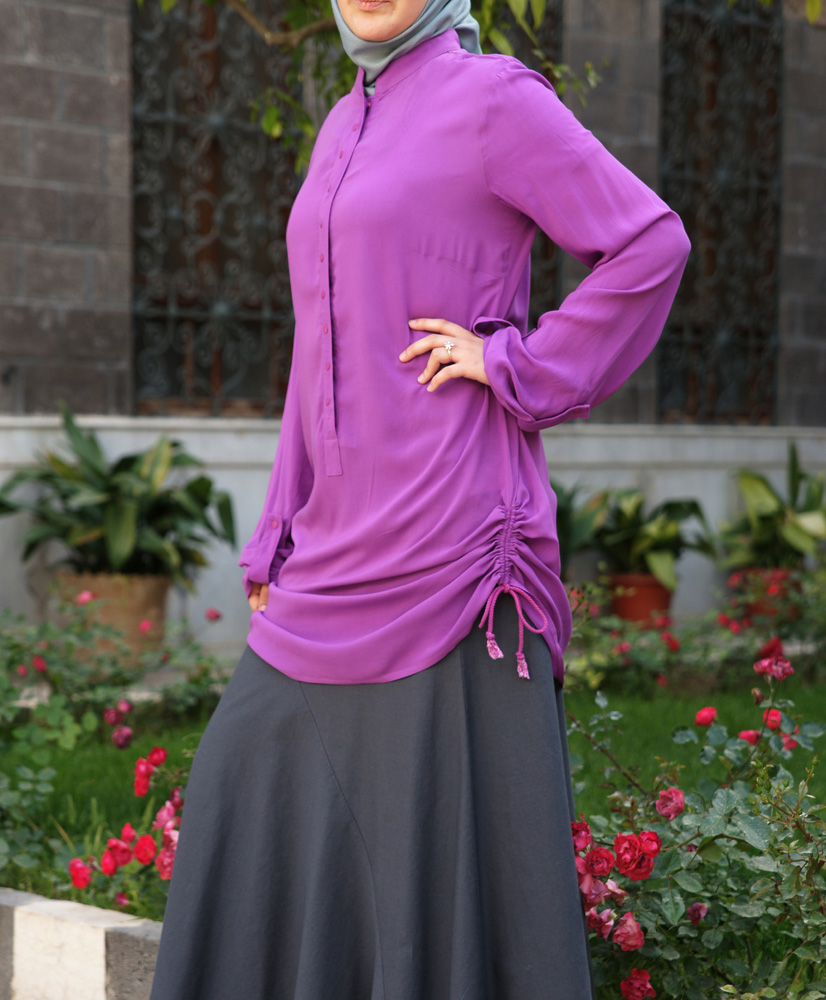 Tunique à volants (Vetement pudique femme voilée) - Couleur violet et blanc - REF. 33096 (19.90 €)
