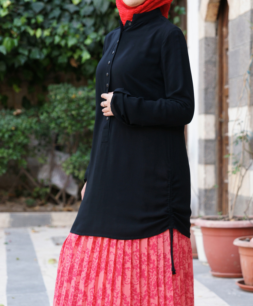 Chemise-Tunique longue à rayures (Vêtement pour femme voilée et hijab - Mode islamique) - Couleur noir - REF. 35823 (24.90 €) - En Promotion à 18.00 €