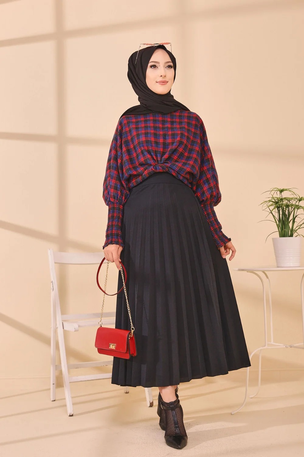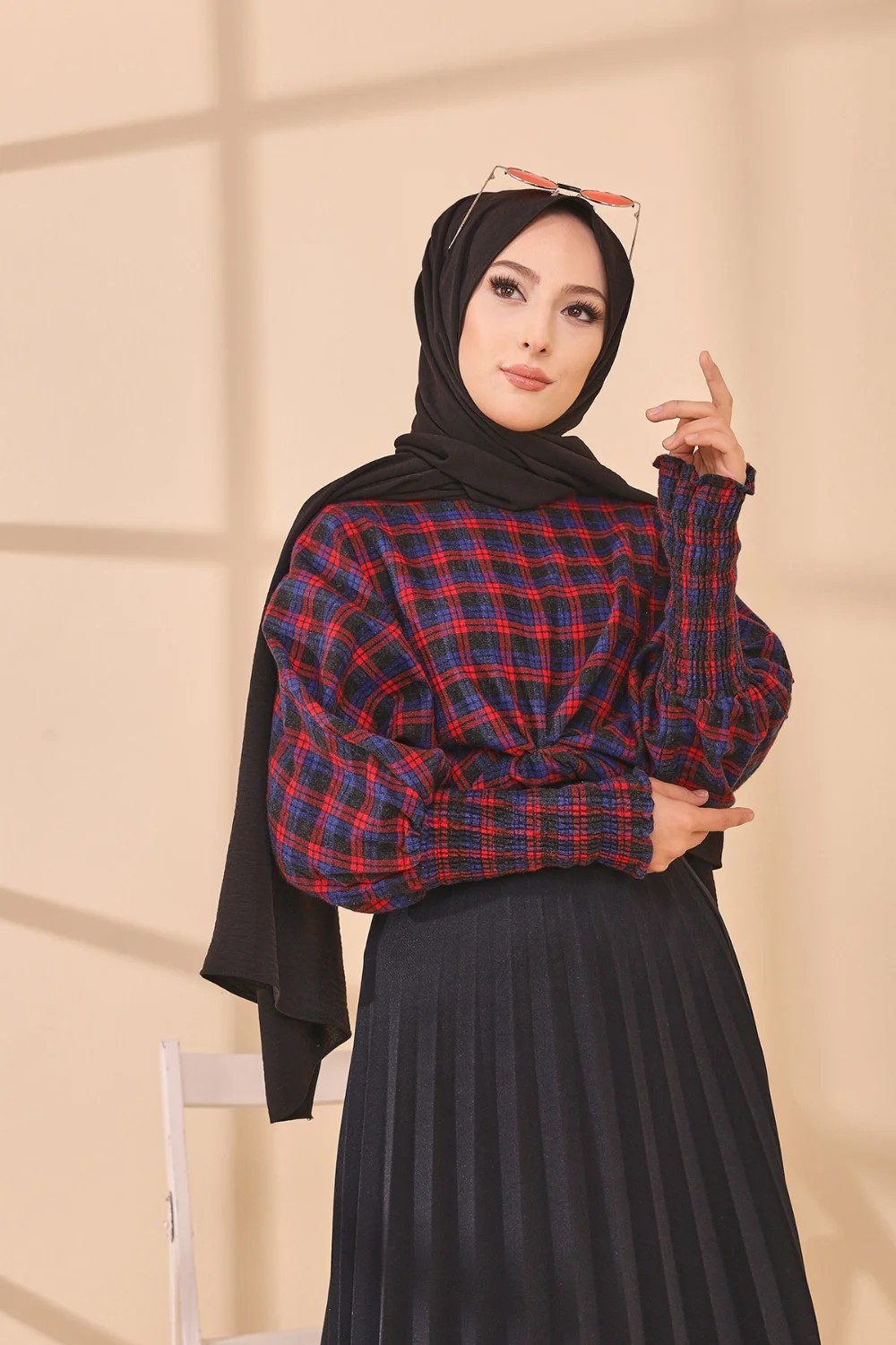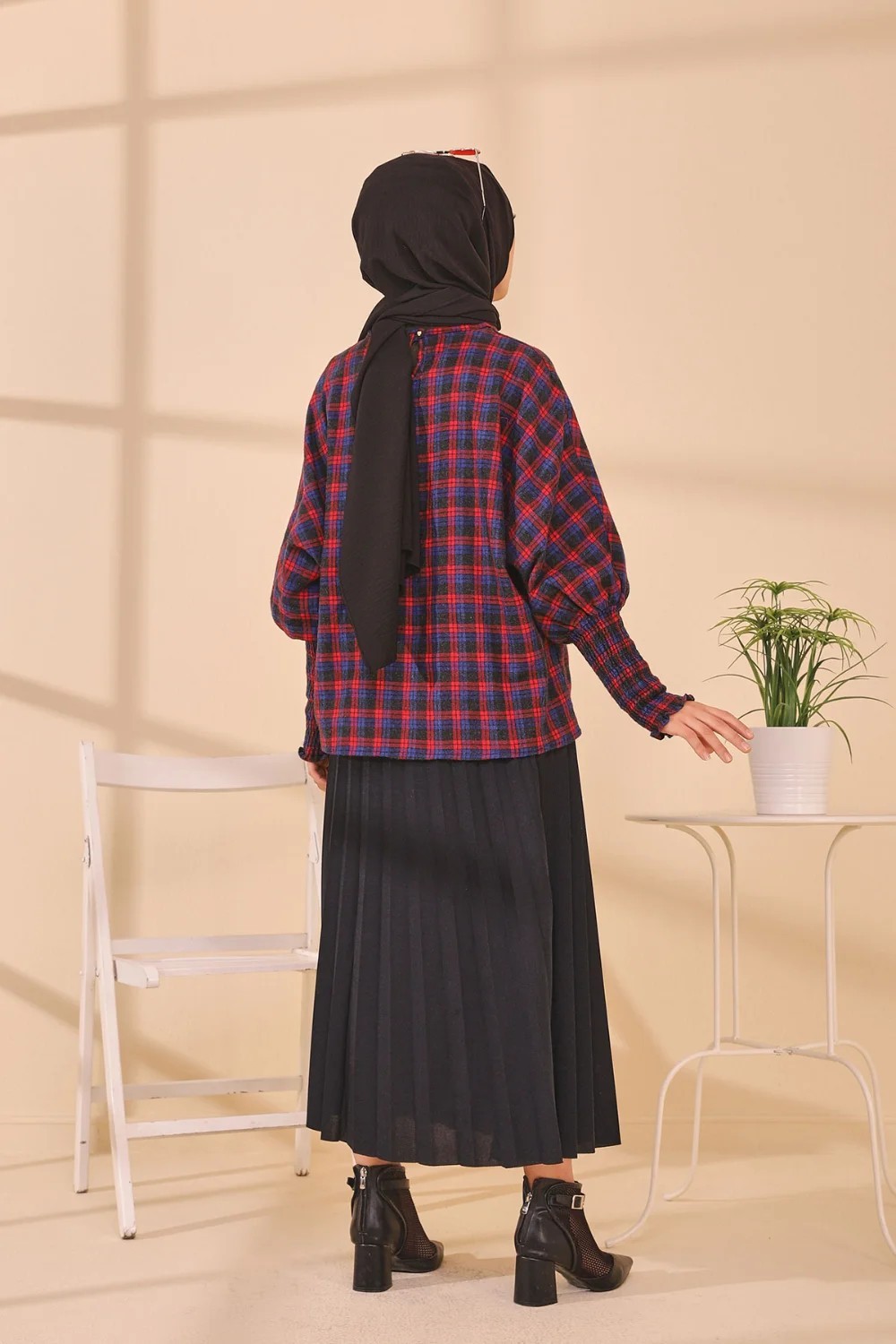 Chemisier à carreaux (Tenue Hijab style habillé) - Couleur bleu et rouge Vetement & Accessoire