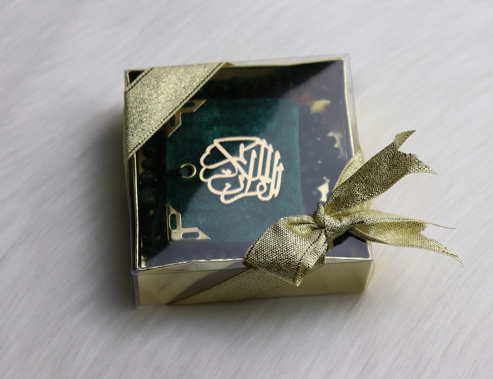 Coffret Cadeau : Mini Coran + chapelet "Sabha" - Couleur Vert fonce