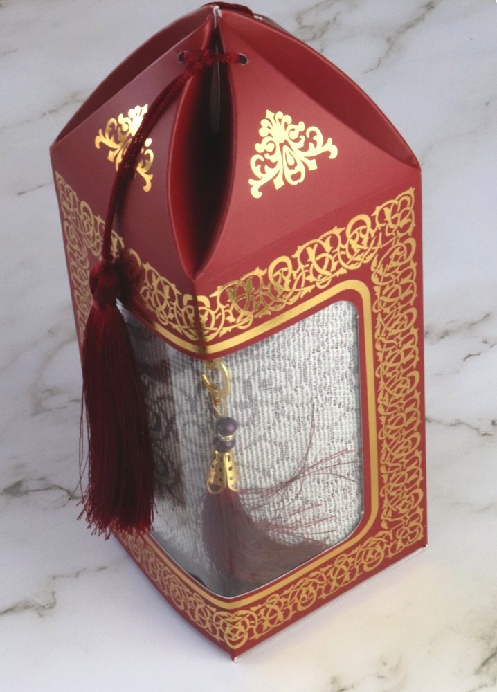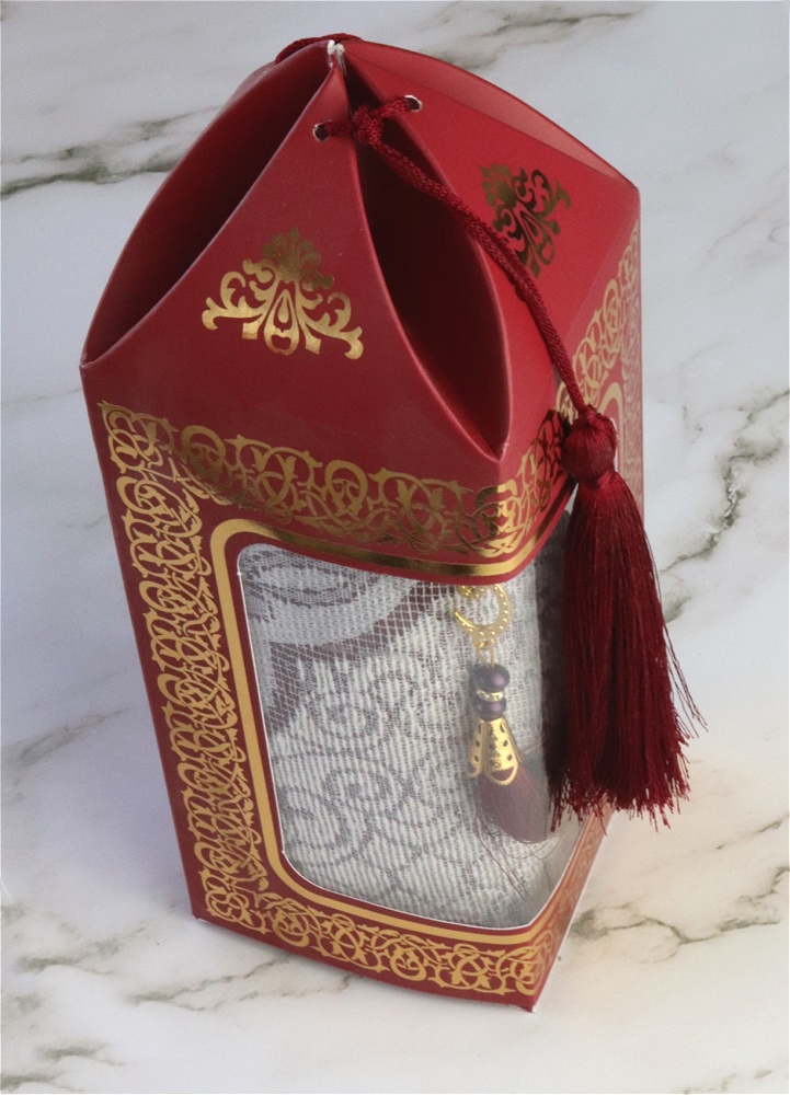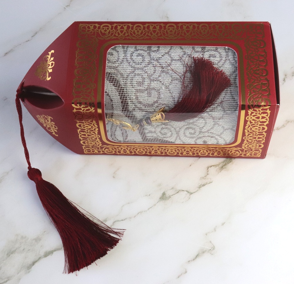 Coffret cadeau musulman : Tapis de prière musulman avec sa boite et chapelet - Couleur bordeaux - REF. 41002 (14.00 €)