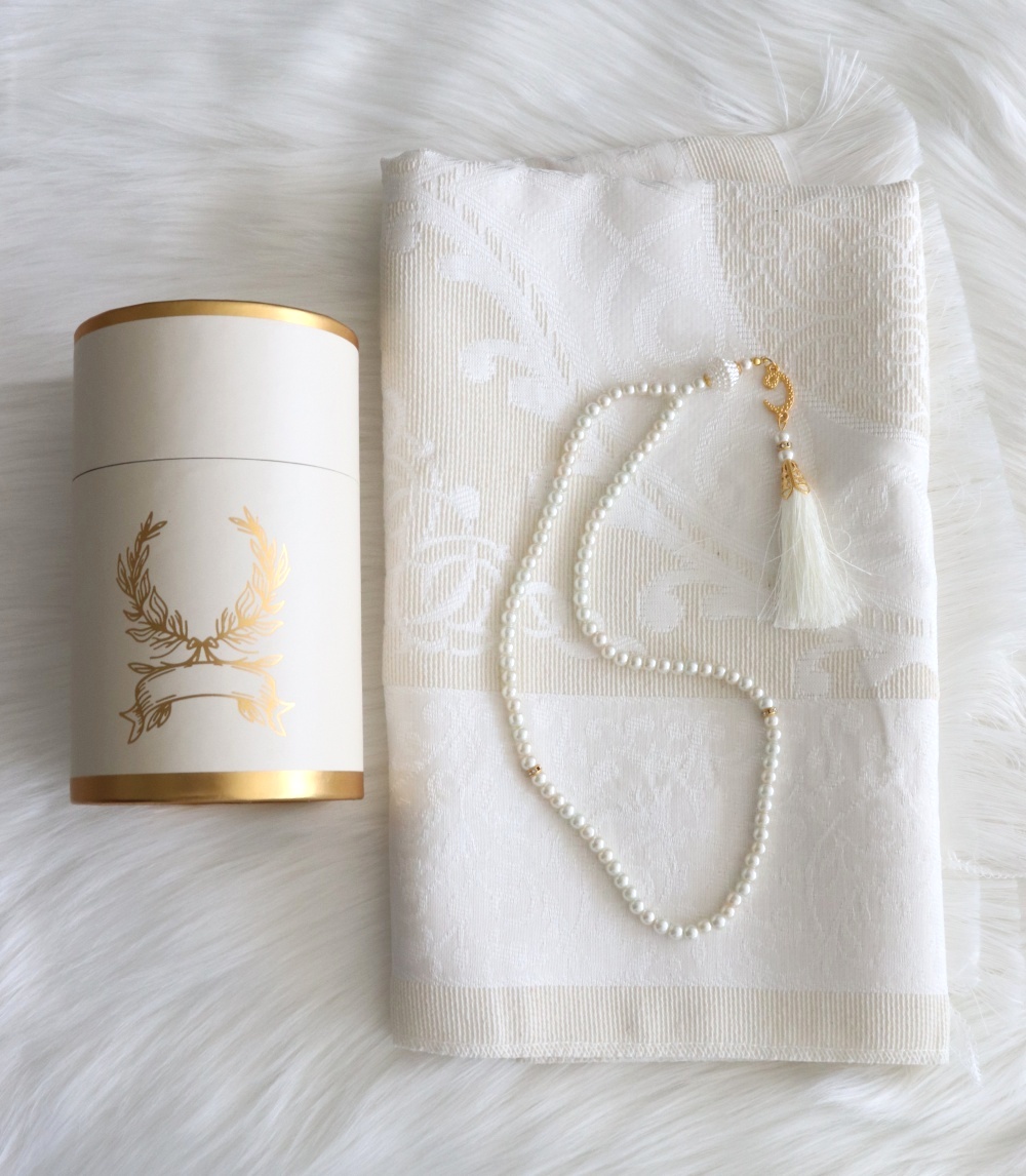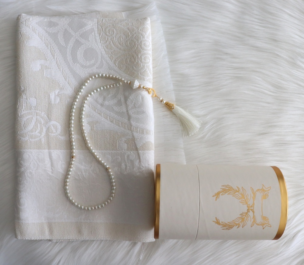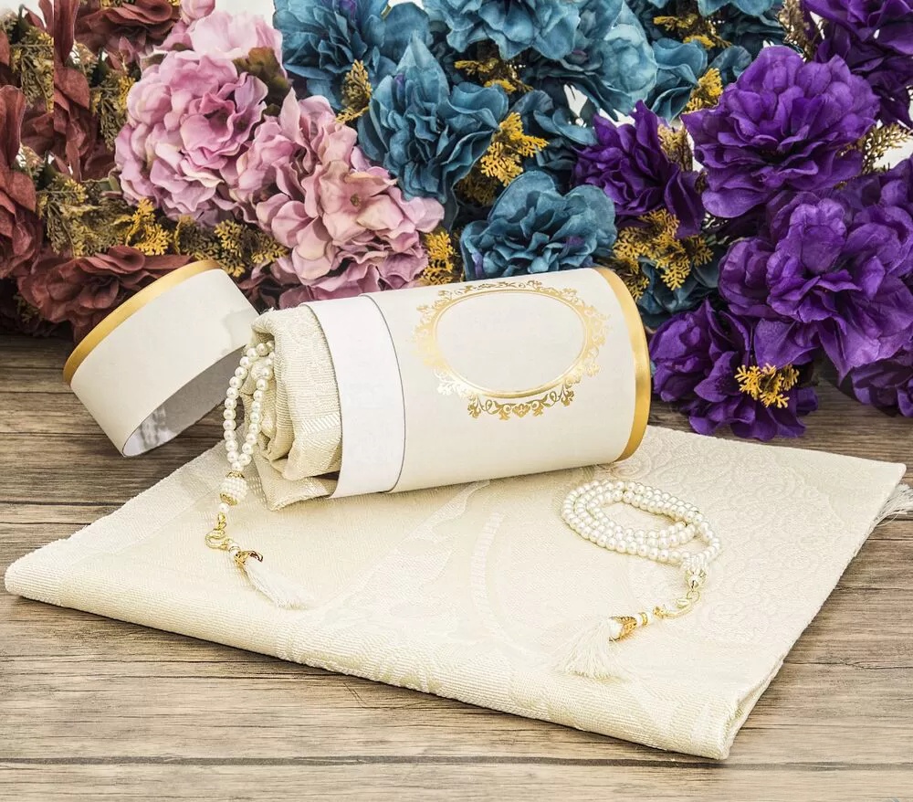 Ce coffret Prière avec sa boite ronde de luxe dorée est une idée originale de cadeau pour toutes les occasions (fête de l'Aïd, Mariage, Anniversaire, Cadeau pour Maman, etc.).