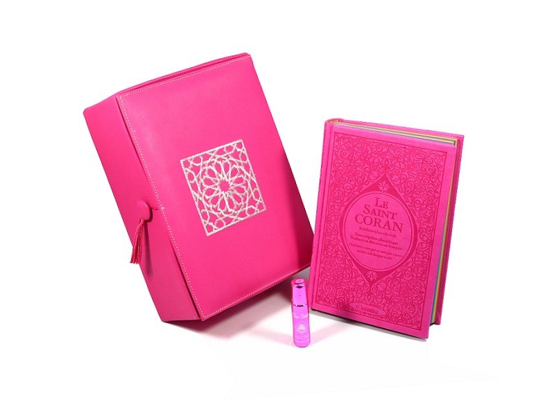 Pack cadeau rose pour femme : Le Saint Coran (français/arabe/phonétique) + La Citadelle du Musulman et Chapelet "Sebha" de luxe assortis - REF. 23766 (32.00 €)