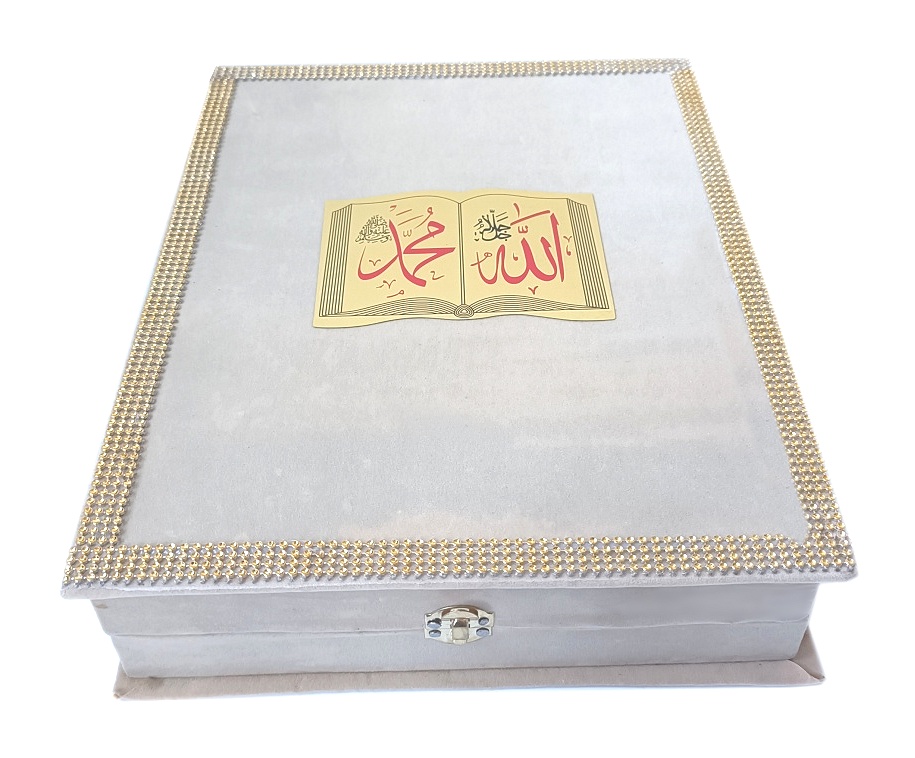 Coffret en bois recouverte de velours de 5 cm d’épaisseur, vous pouvez y mettre même un Coran en langue arabe et des objets. Vous pouvez utiliser ce coffret également pour ranger vos bijoux ou autres effets personnels...