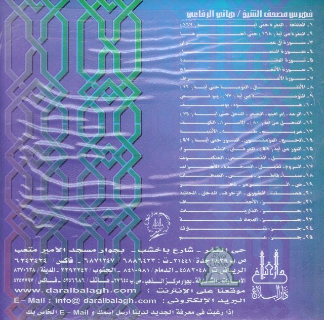 Psalmodie du Saint Coran selon la version Hafs par Cheikh Hani Ar-Rifaî (CD MP3) - المصحف المرتل كاملا برواية حفص للشيخ هاني الرفاعي - REF. 17138 (6.00 €)