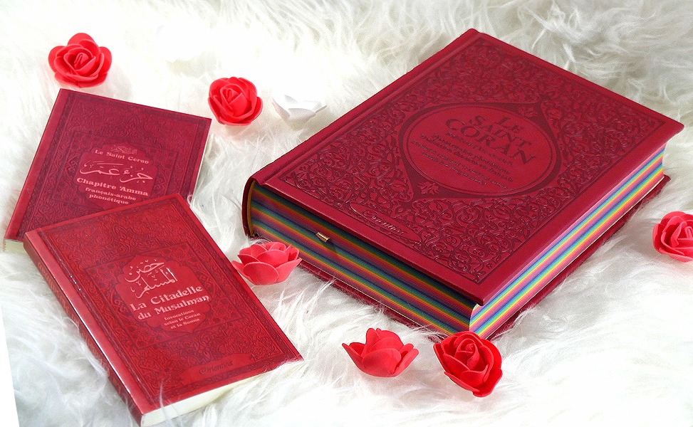 Coffret/Pack Cadeau Musulman de couleur Bordeaux : Le Saint Coran Rainbow, Chapitre Amma (Jouz' 'Ammâ) et La Citadelle du Musulman (français/arabe/phonétique) - REF. 28525 (34.00 €) |