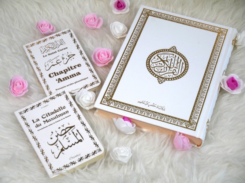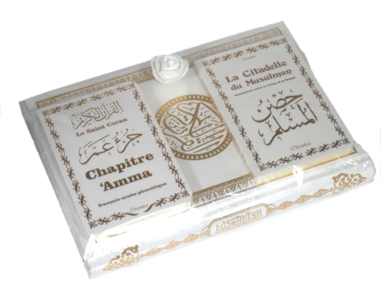 Pack Cadeau pour Femme (Le Noble Coran - La Citadelle du Musulman - Chapitre 'Amma - Les 40 hadiths) - Bilingue français/arabe - Couleur blanc doré - REF. 40907 (26.90 €) - En Promotion à 25.00 € |