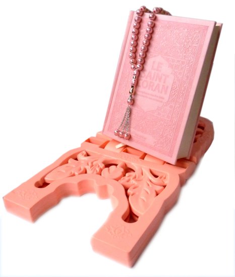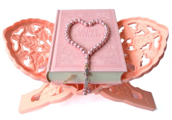 Un cadeau original qui ne passera pas inaperçu. Le Coran et le chapelet ont exactement la même couleur rose pale.