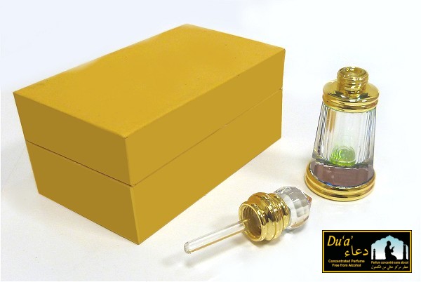 Parfum concentré Prestige Musc d'Or "Du‘a’" (3 ml). Parfum mixte (hommes et femmes). Le mot arabe Du'â' (Doua دعاء) signifie invocation. Avec son coffret cadeau jaune.