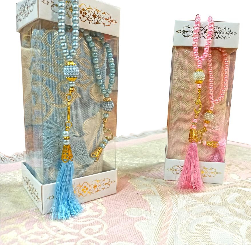 Coffret cadeau musulman avec tapis et sebha (Plusieurs couleurs disponibles)