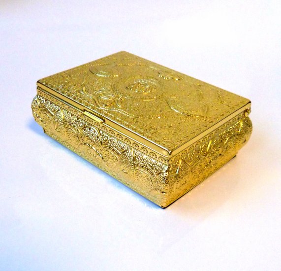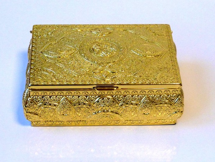 Il brille de mille feux et a un design épuré, ce somptueux coffret métallique de luxe doré (13 x 9 cm) a été fait pour abriter un autre majestueux objet, à savoir, le Noble Coran. Vous pourrez aussi y ranger d'autres livres ou objets de valeur comme des bijoux, des montres...