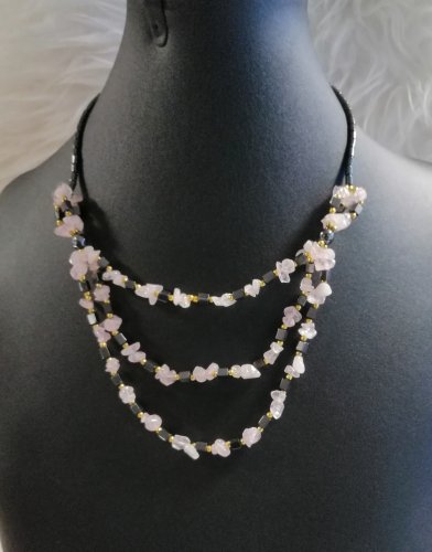Collier artisanal marocain avec des pierres Rose clair sous forme de feuilles d'orangier