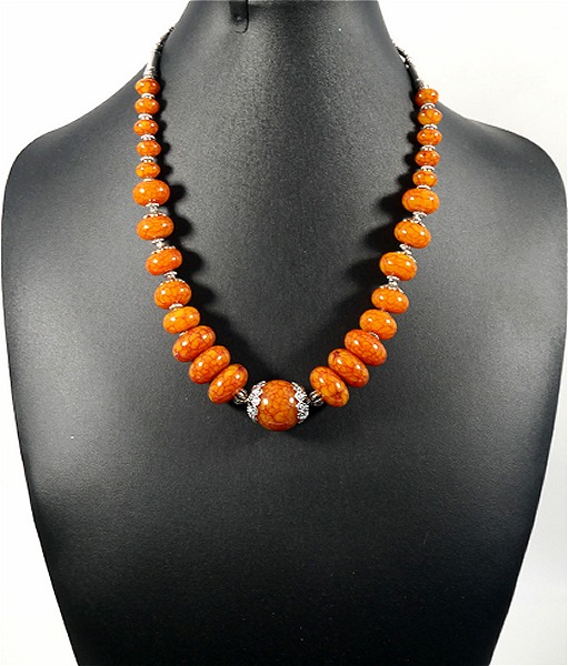 Collier ethnique artisanal avec pierres de couleur orange Vetement & Accessoire