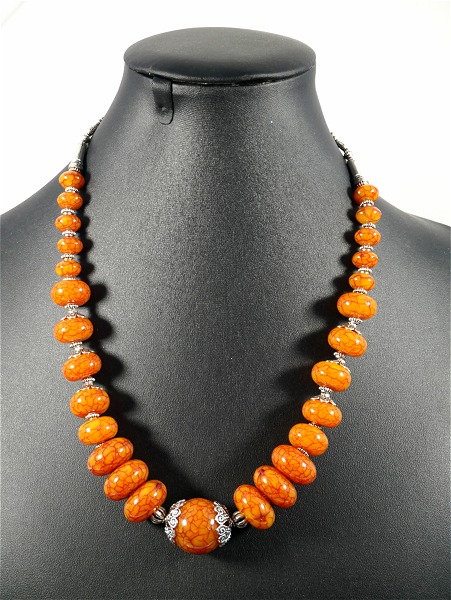 Collier ethnique artisanal avec pierres de couleur orange - REF. 29719 (28.00 €)