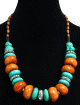 Collier ethnique artisanal femme imitation corail turquoise et perles - REF. 16972 (16.00 €)