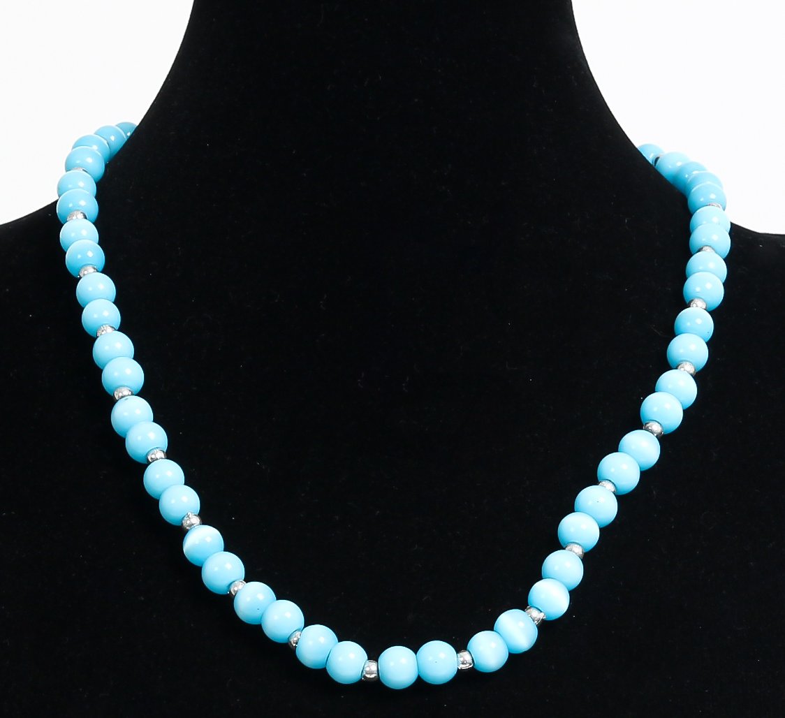 Collier ethnique artisanal imitation perles bleues claires agrémentées d'autres petites perles en métal - REF. 18970 (14.00 €)