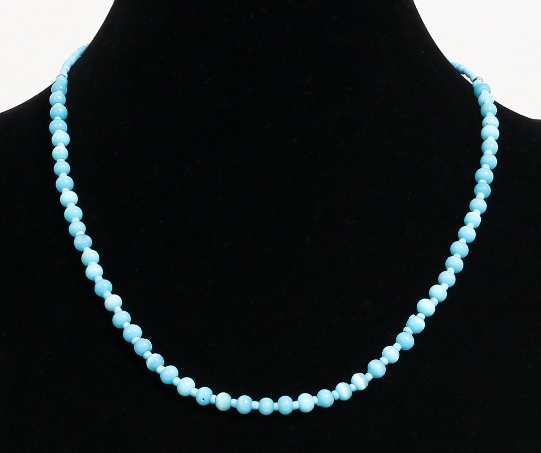 Collier ethnique artisanal imitation perles bleues claires - REF. 18893 (8.00 €)