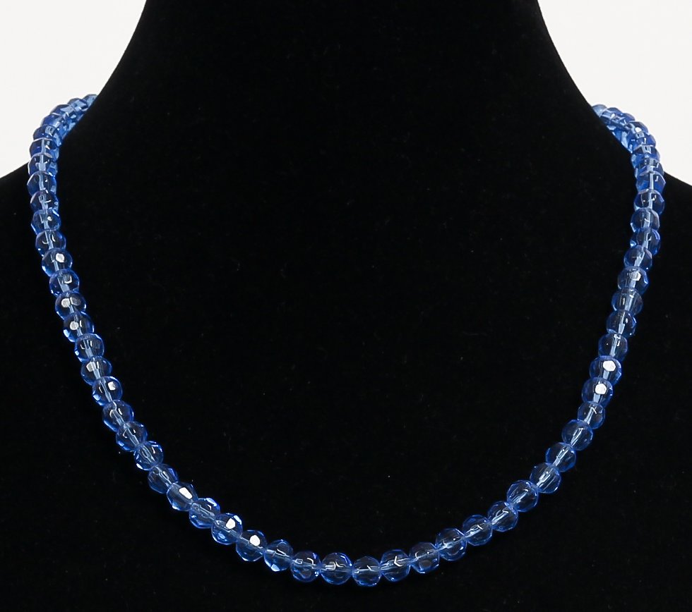 Collier ethnique artisanal imitation perles bleues transparentes - REF. 18971 (14.00 €)