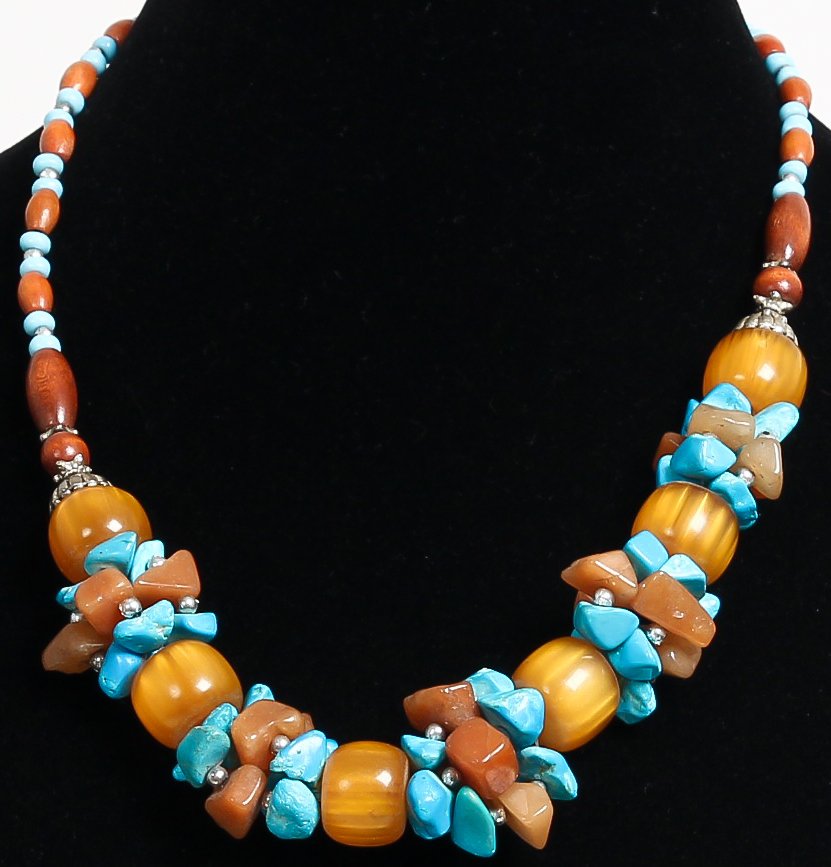 Collier ethnique artisanal avec pierres de couleur orange - REF. 29719 (28.00 €)