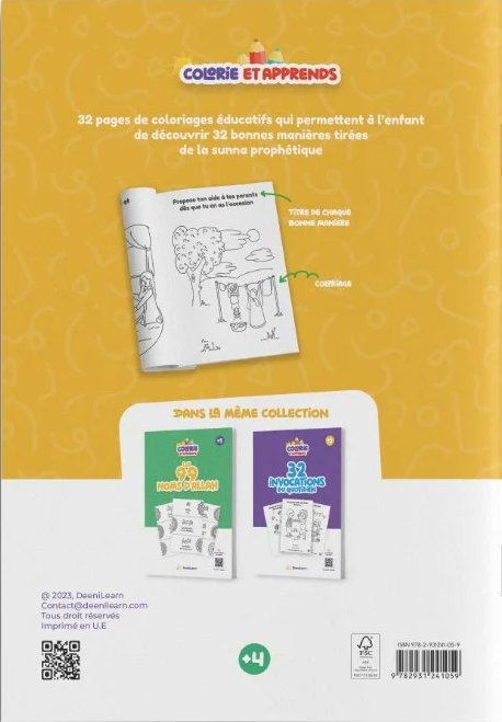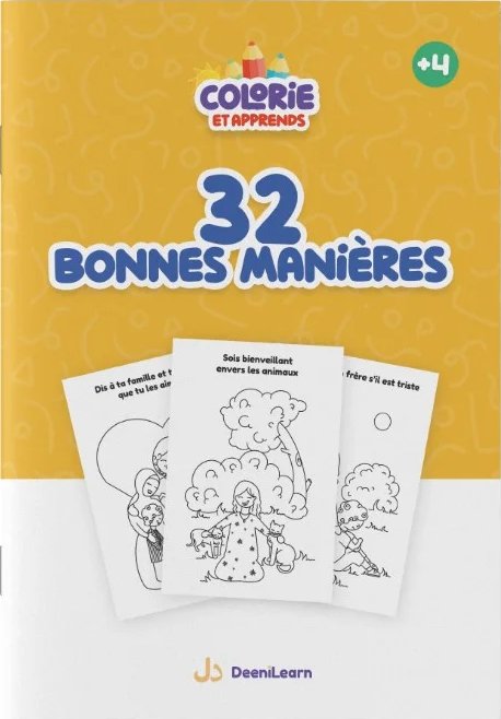 32 pages de coloriages éducatifs qui permettent à l'enfant de découvrir 32 bonnes manières tirées de la sunna prophétique.