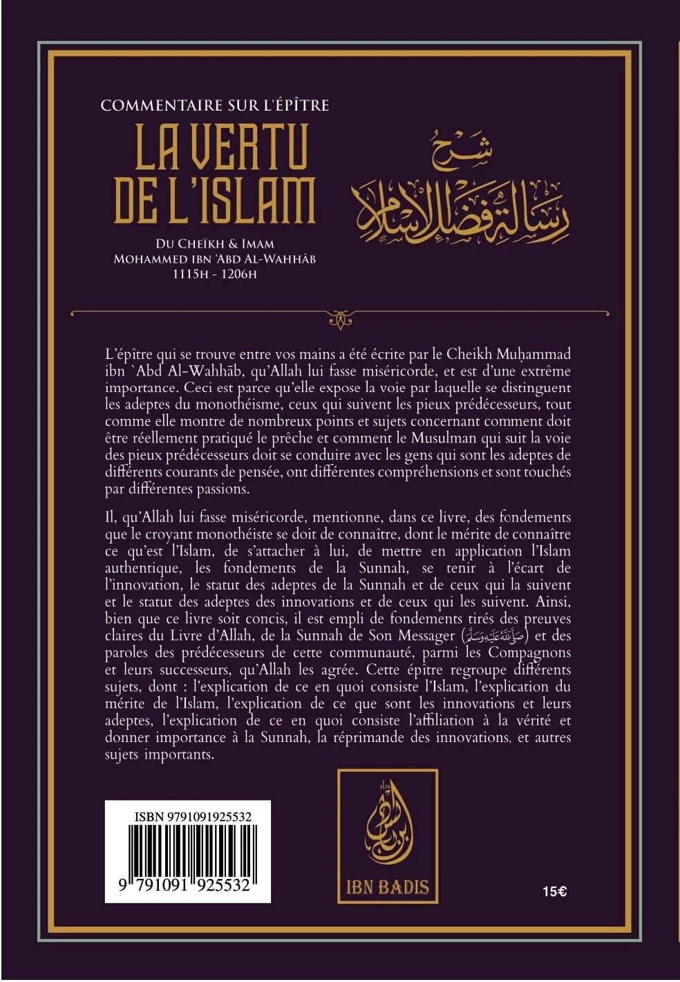 Commentaire sur l'epitre : La vertu de l'Islam -