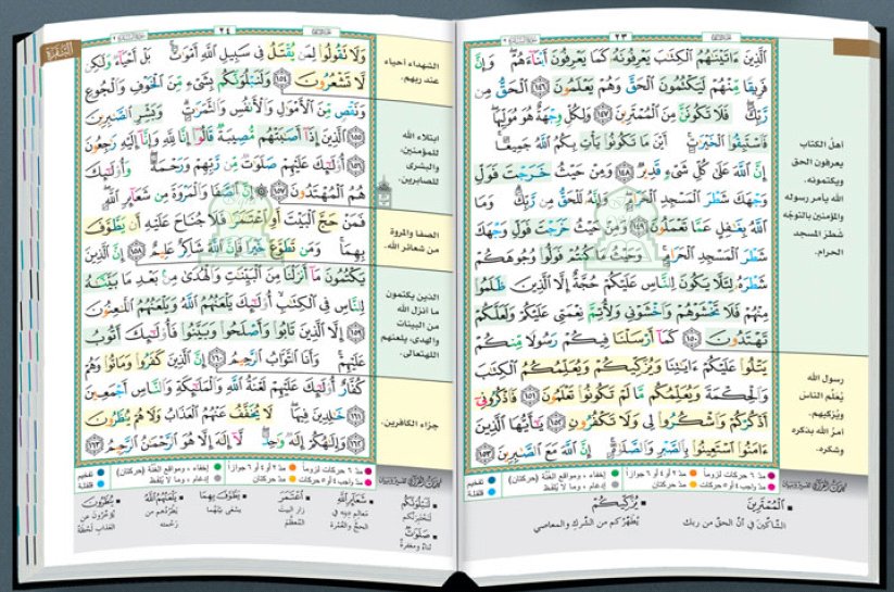 A ce propos, beaucoup de grands ulémas comme (Algazali, Alnawawi, Assiouti ...) ont cru qu'il serait utile et préférable de mettre les letters qui subissent à des règles de récitation en différentes couleurs pour faciliter la psalmodie du Coran. De même, ils n´ont pas trouvé de contre-indications religieuses qui empêchent la codification colorée.