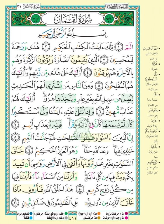 Grâce à Dieu, à notre époque il se trouve beaucoup de nouvelles technologies, dont nous essayons de profiter pour servir la parole de "ALLAH". Alors, Nous avons appliqué la coloration de la calligraphie du Coran sur les letters qui sont soumises à des règles de récitation après les avoir réparties en 3 catégories,