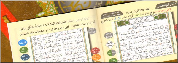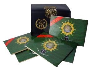 ختمة مجزأة 30 جزء بالعرض عوضاً عن الطول، كل صفحة في صفحتين، مع مزية الفراغ الوقفي الاختياري بين الكلمات مما يساعد على الوقوف في المكان الصحيح الذي يضمن سلامة المعنى وحسن الأداء