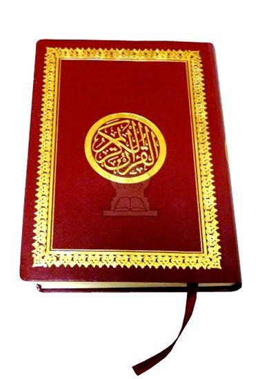 Idéal pour offrir aux mosquées. Marque page en tissu satiné rouge. Papier chamois de qualité, impression deux couleurs. Couverture en similicuir flexible plastifiée et dorée avec bords arrondis.