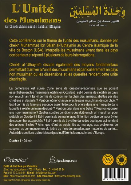 DVD L'Unité des musulmans (Version française - Cheikh Al-Uthaymîne) - REF. 6502 (10.00 €) - En Promotion à 6.90 €