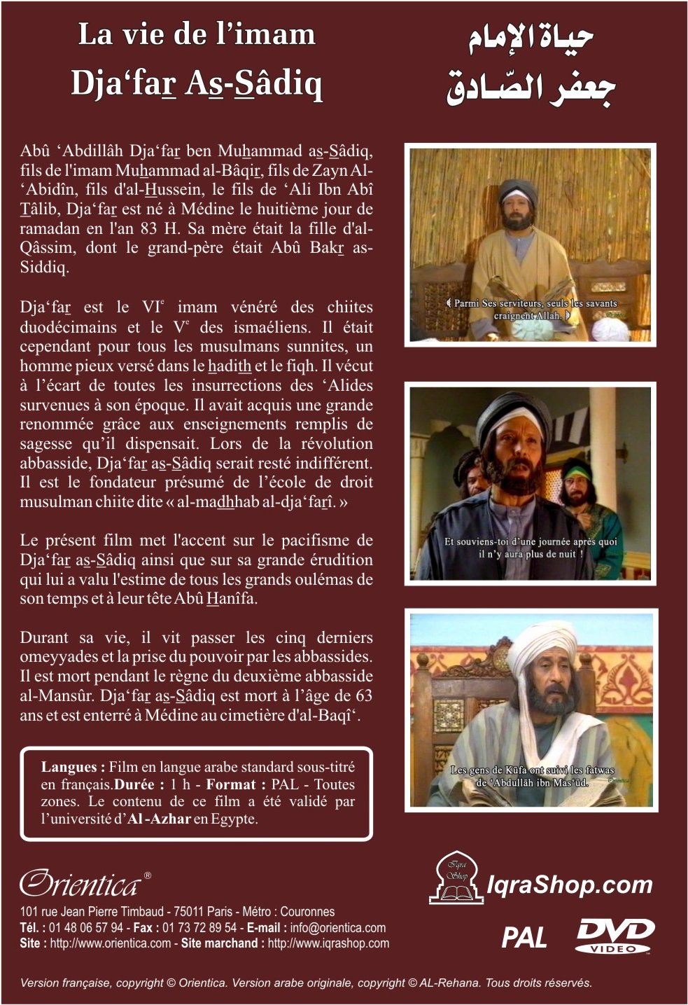 CARACTÉRISTIQUES : Langues : Film en langue arabe standard sous-titré en français. Durée : 1 h - Format : PAL - Toutes zones. Le contenu de ce film a été validé par l’université d’Al -Azhar en Egypte.