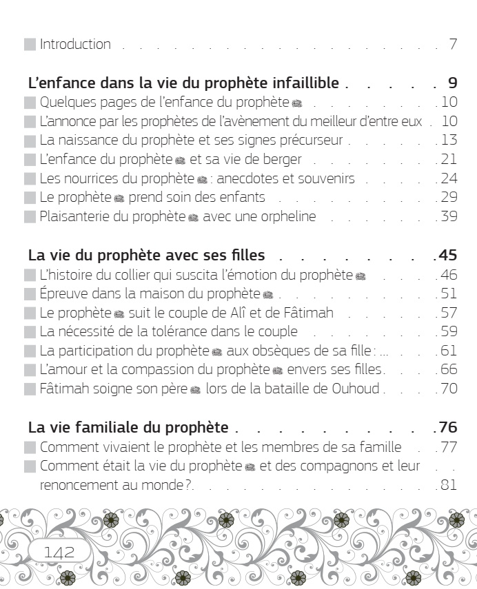 La biographie de notre prophète (PBDSL) est l’objet de l’attention de toute la nation islamique, de génération en génération depuis des siècles. Elle demeure également une source intarissable d’enseignements dans de nombreux domaines ; allant de la croyance à la législation, en passant par les enseignements juridiques, méthodologiques et éducatifs. Les savants musulmans ont porté un intérêt particulier à cette biographie qui ne ressemble à nulle autre pareil. C’est donc dans cet esprit que nous nous sommes attelé à sélectionner certains passages de la vie familiale du prophète afin de mettre en évidence les aspects relatifs à son foyer. Il faut donc noter que les quatre livrets de cette série sont tirés de notre grand ouvrage intitulé « Muqtatafât mi nBayt an-Nubuwwah » (la maison de la prophétie مقتطفات من بيت النبوة).