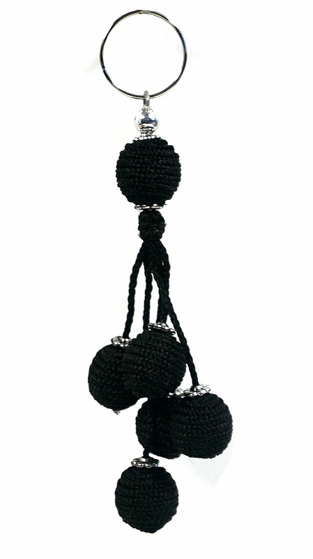 Pendentif décoratif / Porte-clés artisanal en sabra avec pompons - Noir - REF. 29054 (4.90 €)