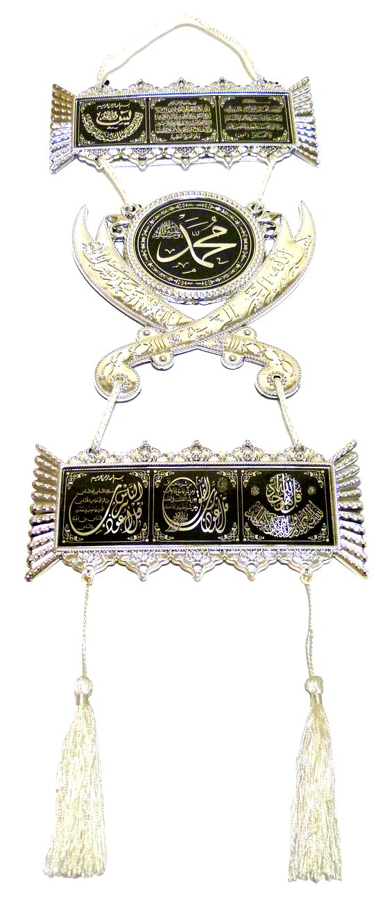 Décoration argentée avec inscriptions Sourates "Al Fatiha", "Al-Ikhlâss" et "Al-Falaq" - REF. 21749 (8.50 €)