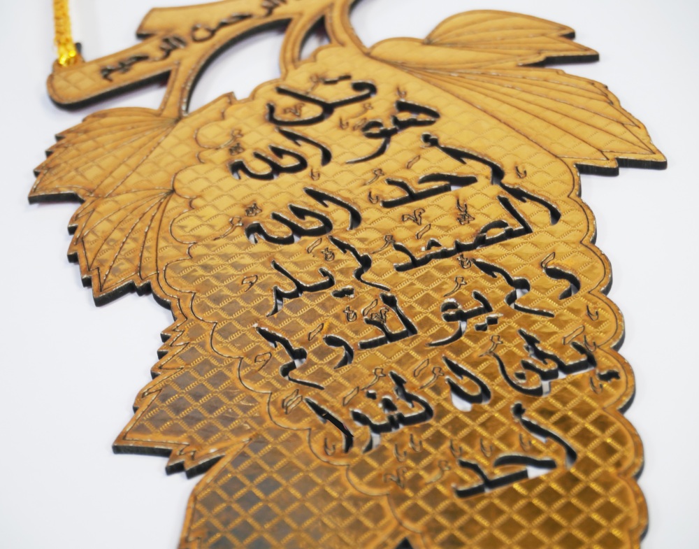 Decoration islamique en bois a accrocher avec inscription coranique de Sourate Al-Ikhlass (Le Monotheisme Pur)