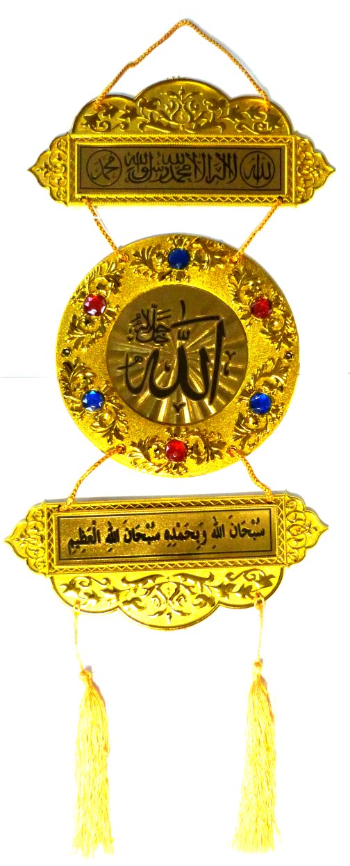 Pendentif islamique décoratif doré " Allah & Bismillah-arrahman-arrahim" - REF. 37635 (4.50 €) - En Promotion à 3.50 €
