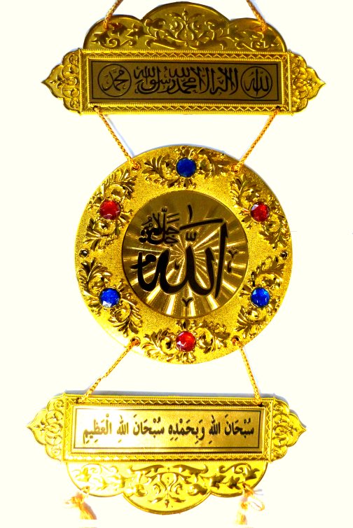 Objet décoratif islamique avec le Nom d'ALLAH, La Besmala et la Chahada (Attestation de foi musulmane) - REF. 24046 (3.90 €)