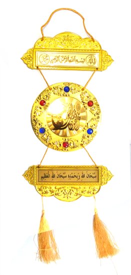 Pendentif doré avec les inscriptions calligraphiques "AL FALAQ" sur la partie centrale.