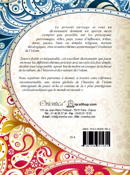 Cet ouvrage est un dictionnaire qui essaie de donner un aperçu aussi exhaustif que possible des principaux personnages, villes, pays, zones d’influences, tribus, dates, pactes, lieux ou temples religieux, notions théologiques, rites et autres thèmes ayant marqué l’évolution de l’islam.